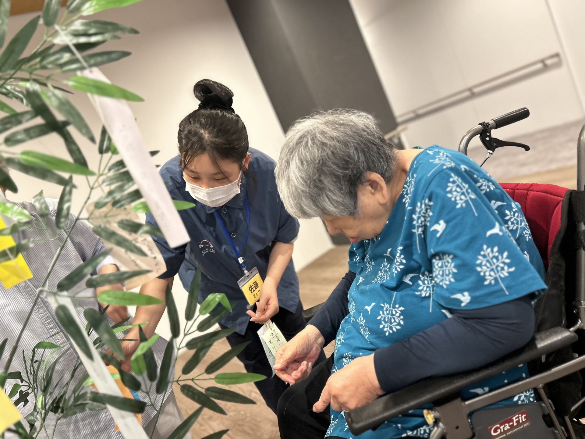 一人づつ高齢者さんの希望、短冊に書いてくれた。