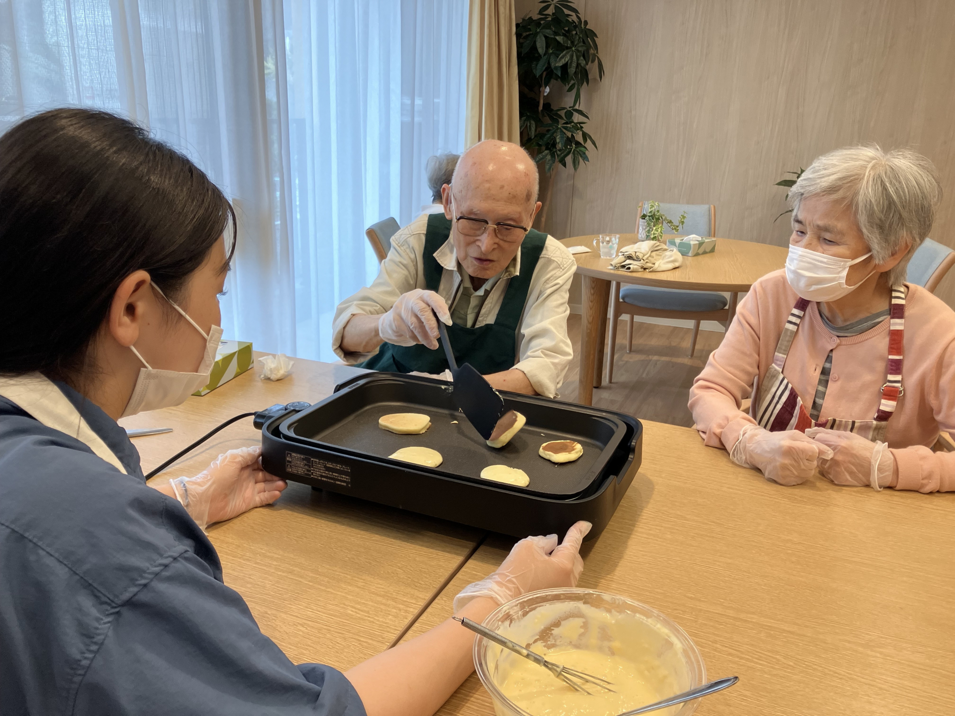 ホットケーキが焼ける甘い香りの中でおしゃべりも盛り上がってとても楽しそうでした♪