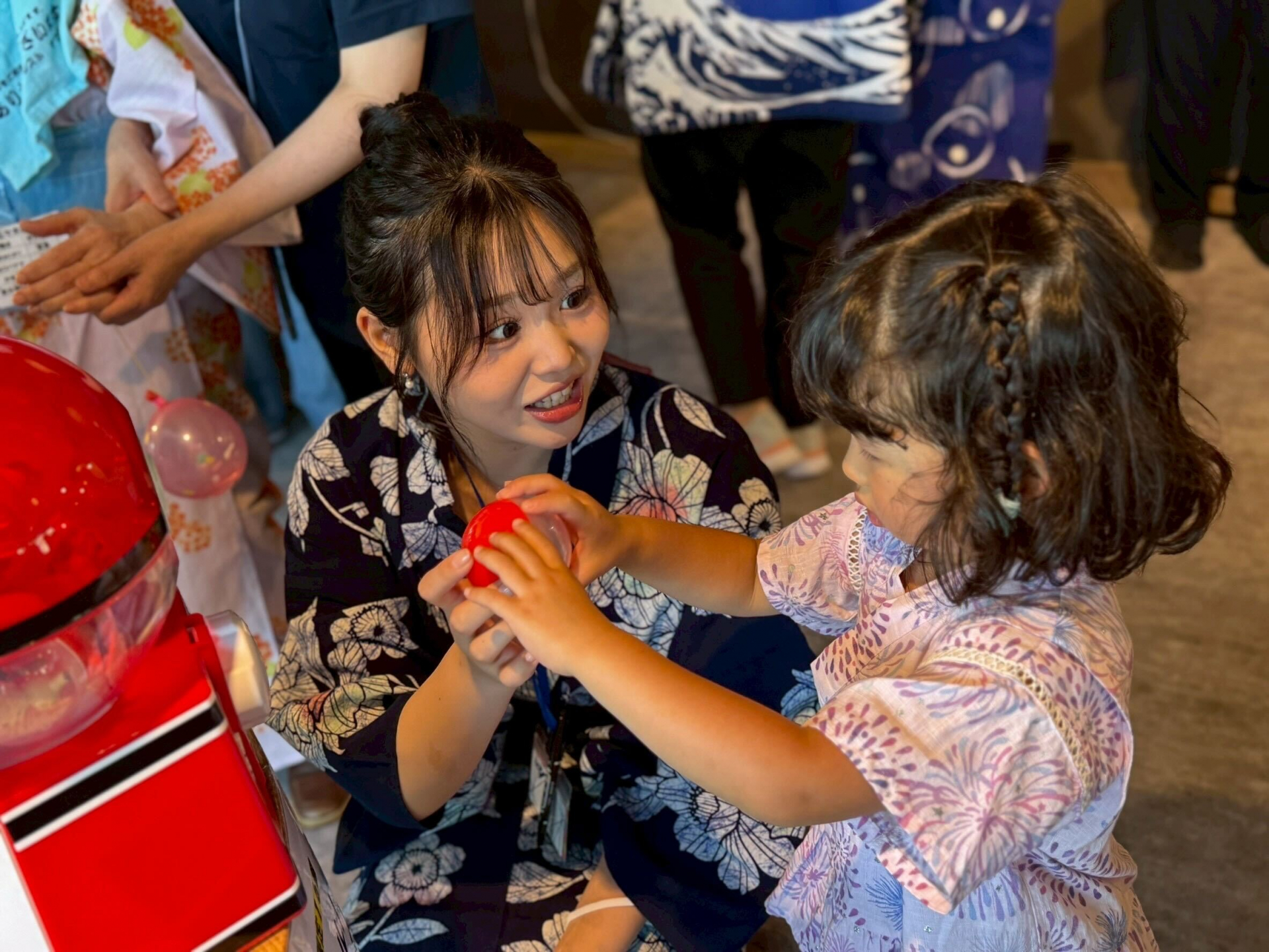 お祭りの目玉は、子どもたちに大人気だった「ガチャガチャコーナー」「くじびきコーナー」何が出るかわからないドキドキ感に、娘さんの目がキラキラと輝きます。