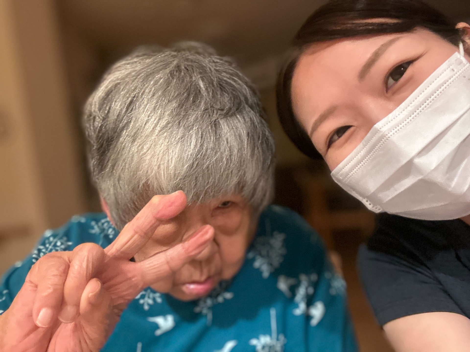 利用者様と一緒にパシャリと記念の一枚を撮影し、ほっと心が和むひとときからスタートです。