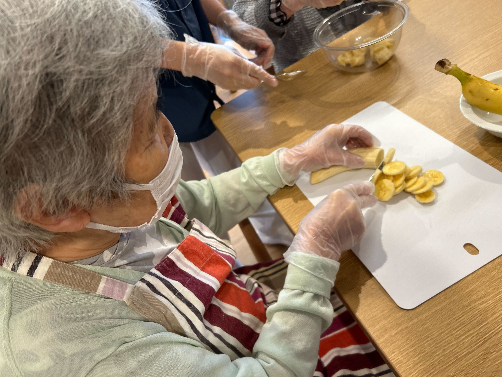 【介護施設・レクリエーション】手作りバナナケーキにチャレンジ