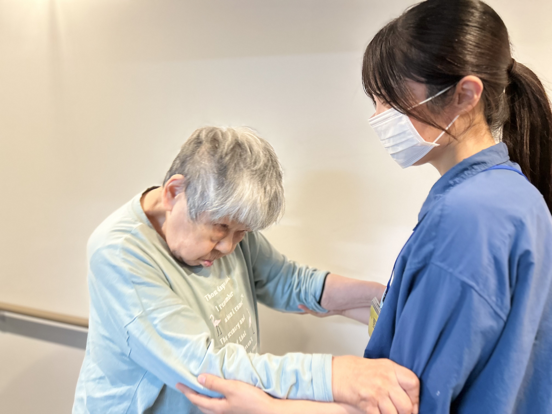看護職と介護職が連携し、体調の変化を見守りながら、安全に、そして安心して続けられるよう支え合っています。