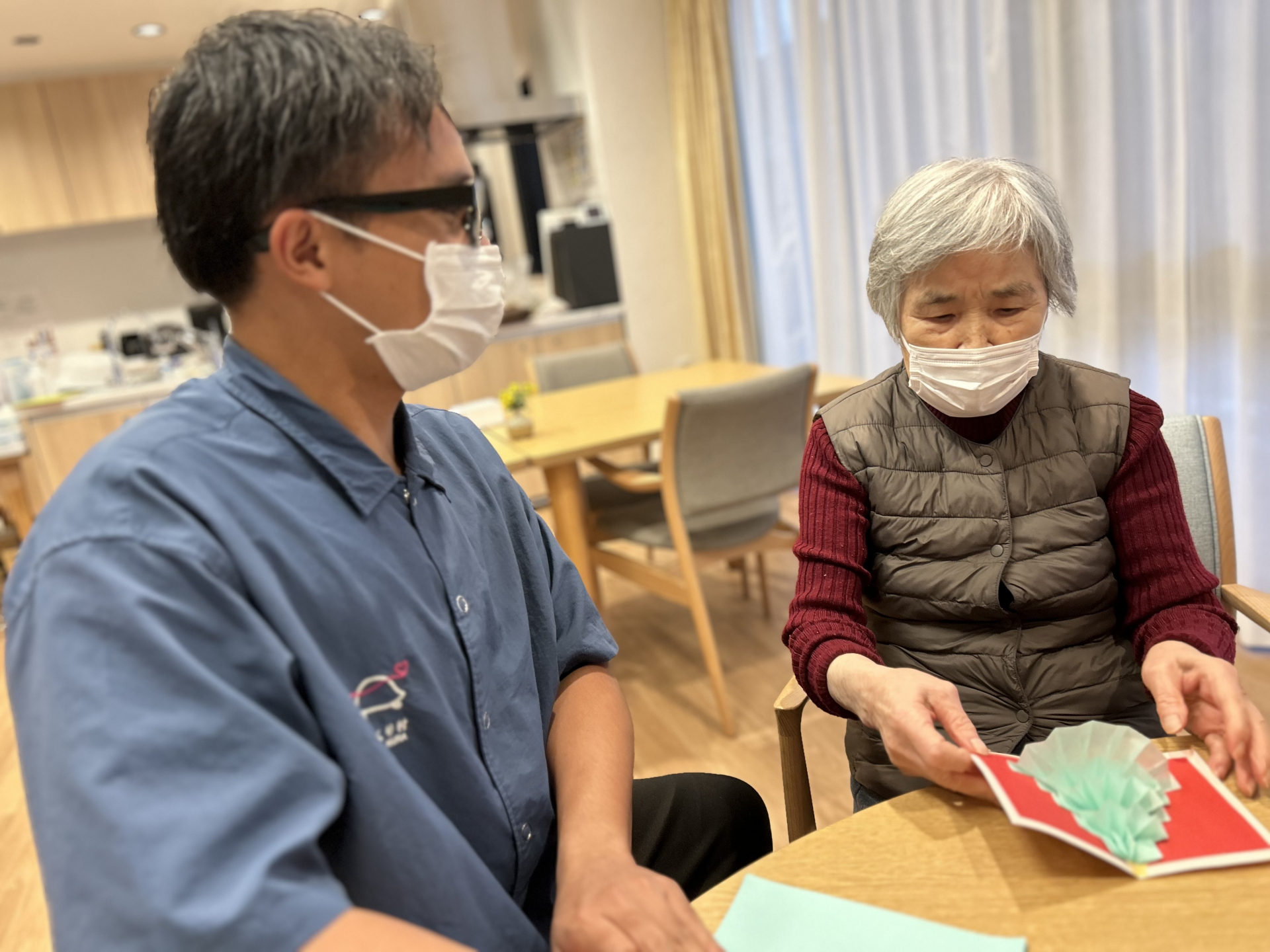 折り紙を折ったり、飾りを貼ったりと、手先を使ったレクリエーションとしてもぴったりの活動で、皆さんの真剣な表情や笑顔が印象的でした。