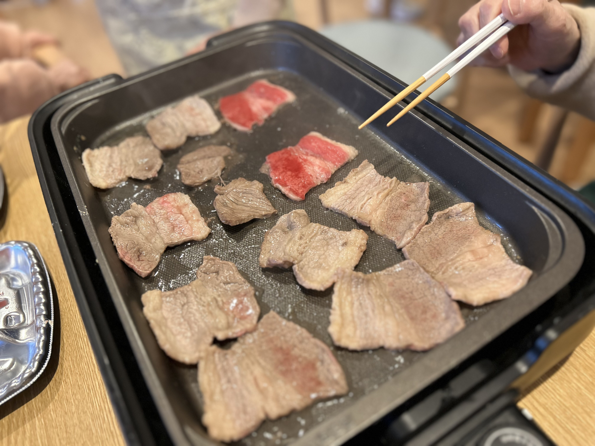 この日の昼食は、ホットプレートを使った焼肉ランチを楽しみました。