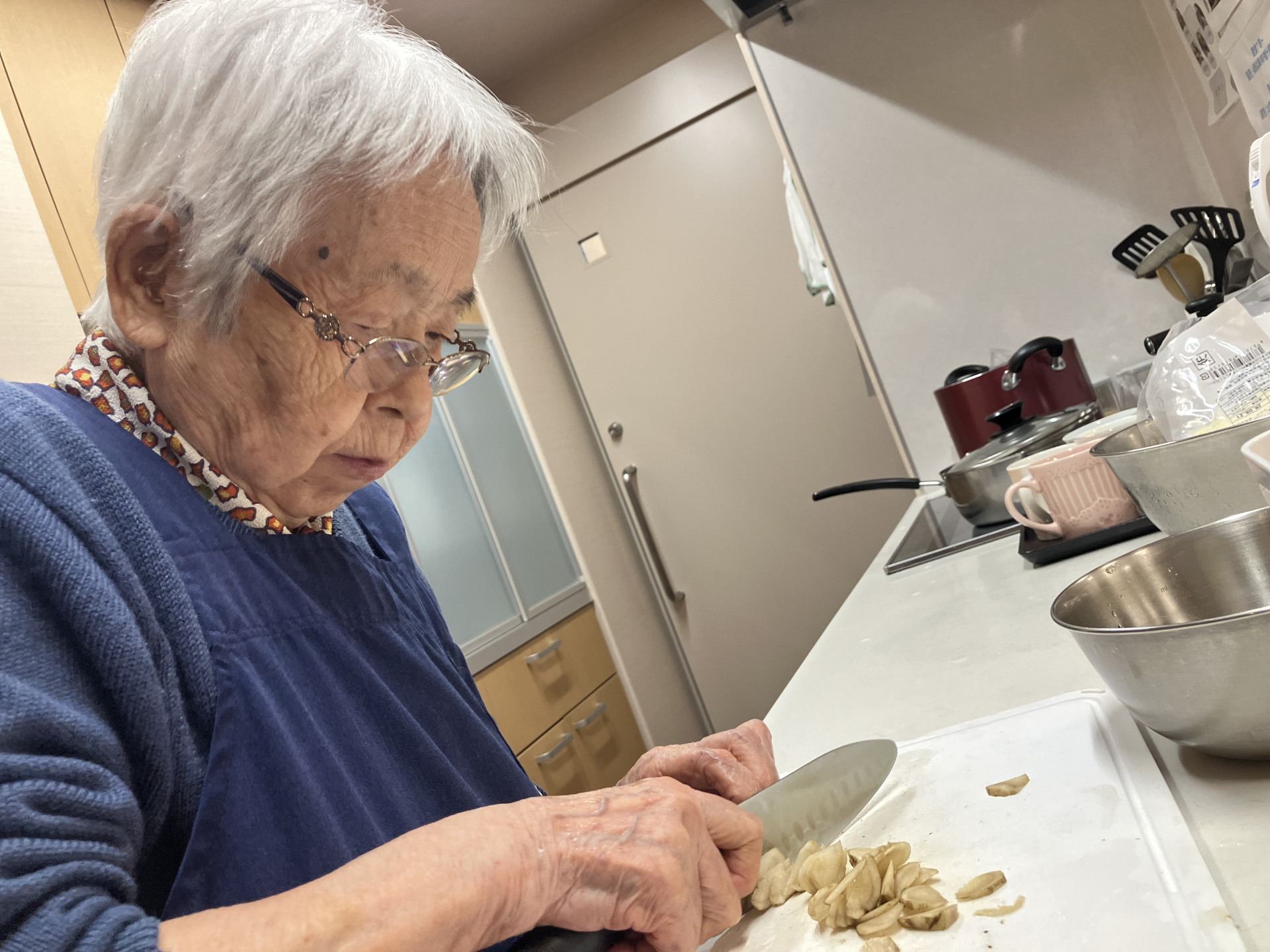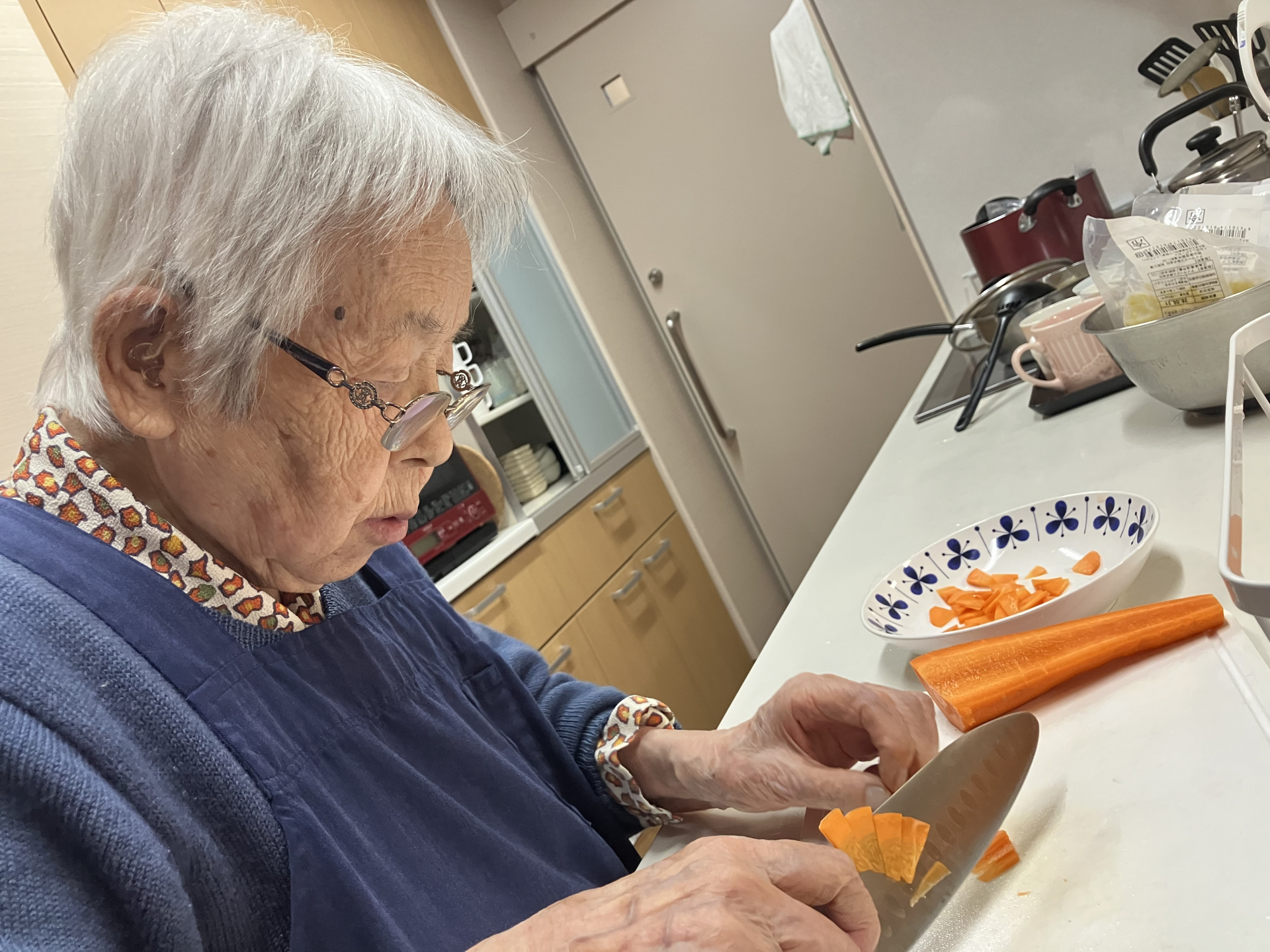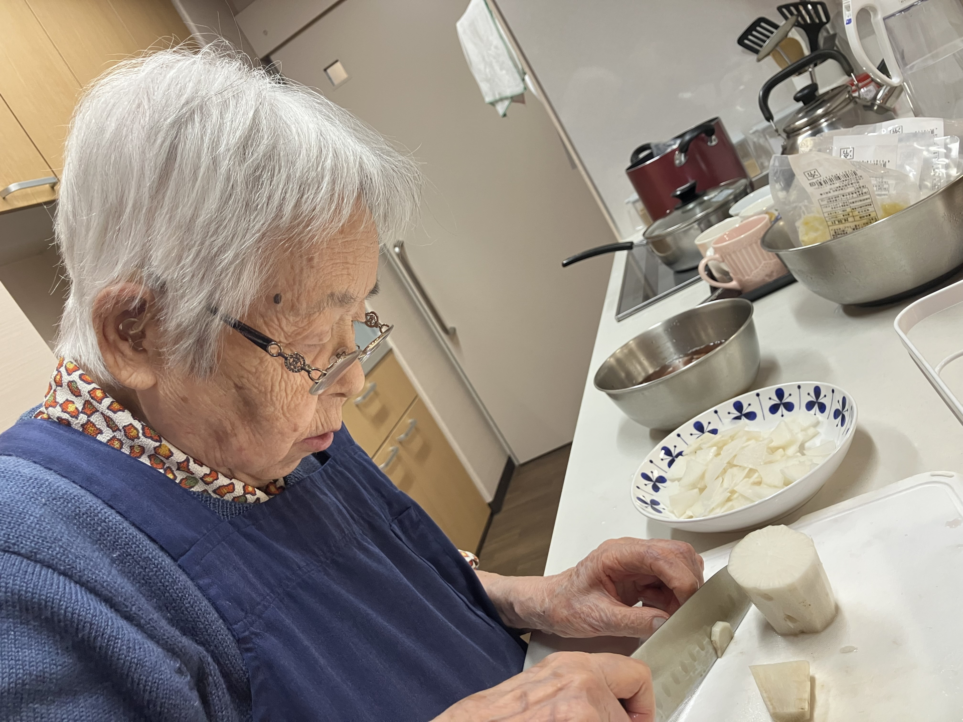 ゴボウを切っていた利用者様が