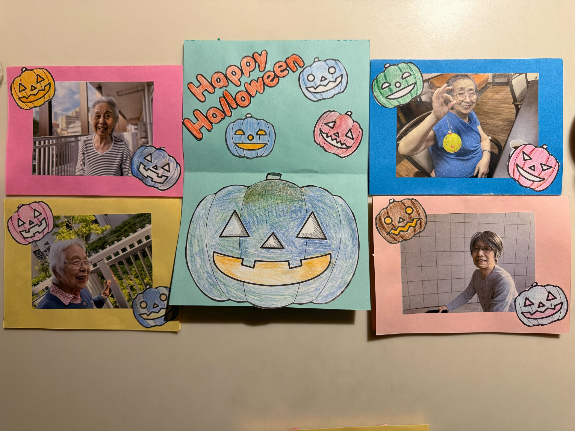 ハロウィンカードは、利用者様に塗っていただいたものを使用し、