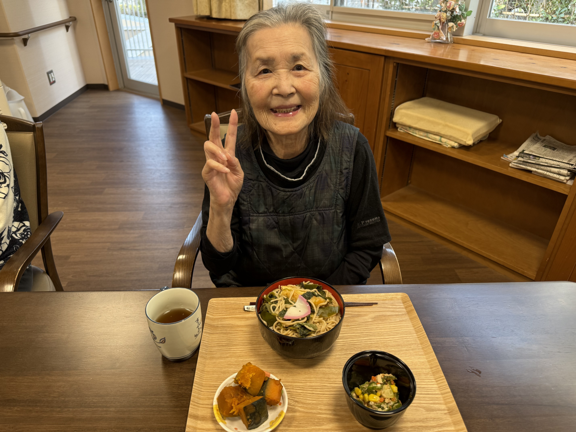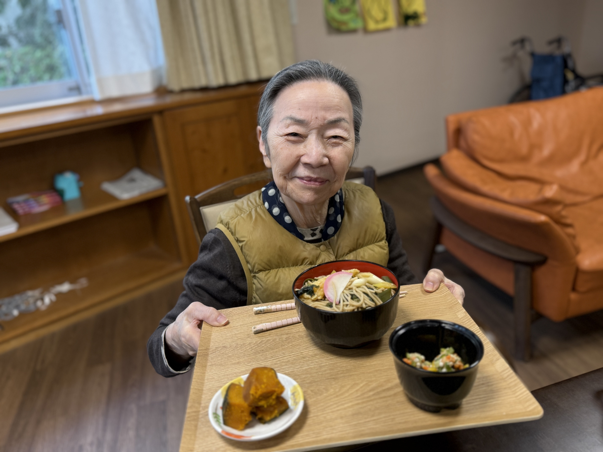 施設では昼食時【年越しそば】を召し上がっていただきました。