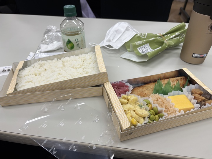 お昼にはお弁当が出ました。代々木上原にある「金兵衛」さんという有名なお弁当屋です。美味しく頂きました。私は知らなかったのですが、有名なお弁当屋さんなんですね。