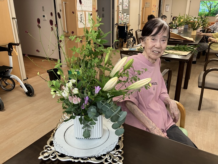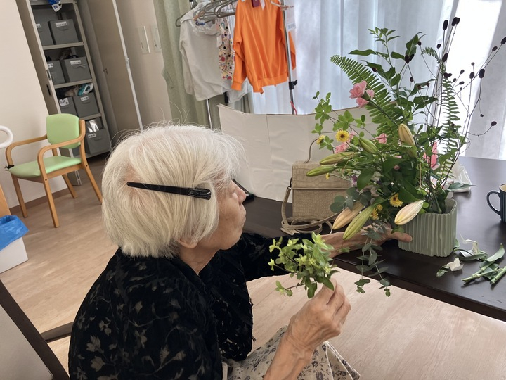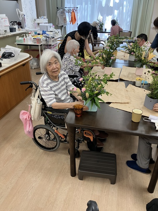 看多機では毎月フラワーアレンジメントの講師をお呼びし、お客様に作り方の指導をして頂いています。