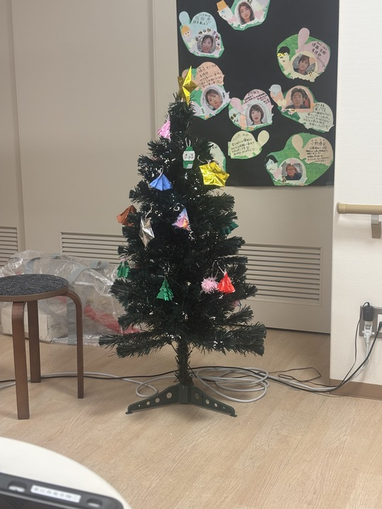 看多機でもクリスマスに向けて準備中。ツリーの飾り付けをスタッフとお客様で作成しています。