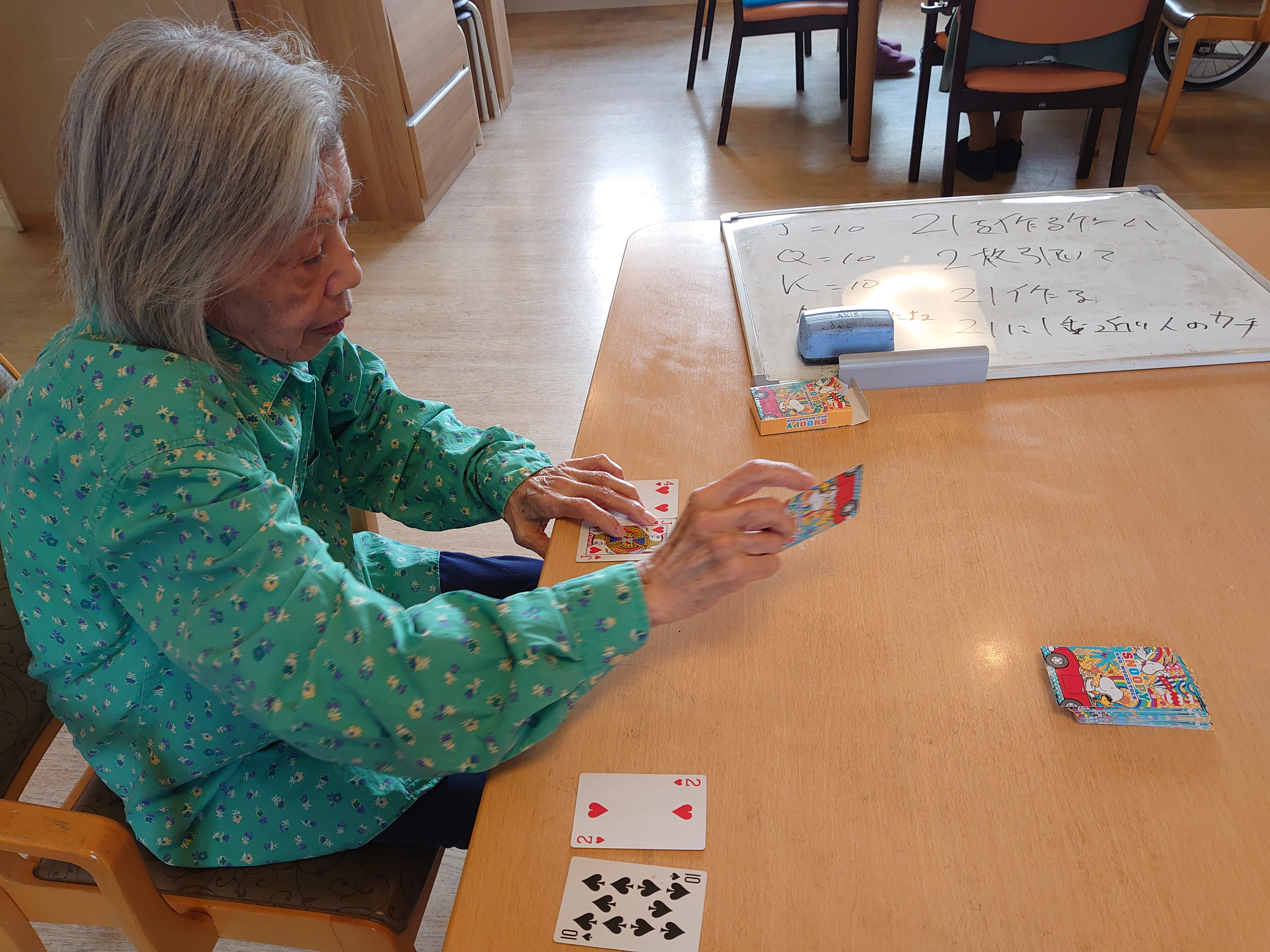 さて、本当に本題ですが、これは先日「頭を使おう!」という事で指定した数字をカードを山札から取り合計を指定した数に近づける。という遊びです。