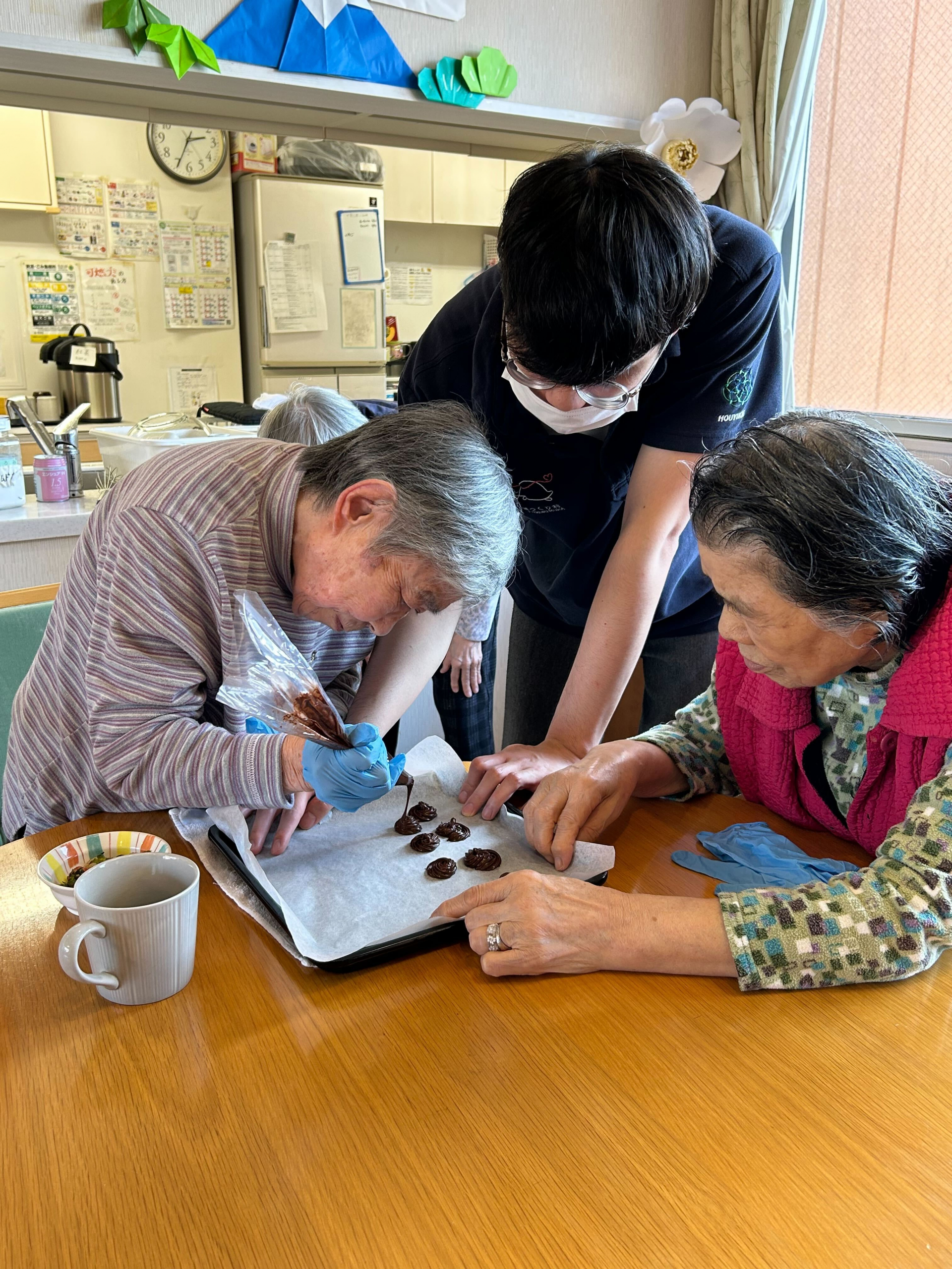 今回は、バレンタインデーに因んだレクレーションで、チョコレートクッキーを作った様子をお届けします。