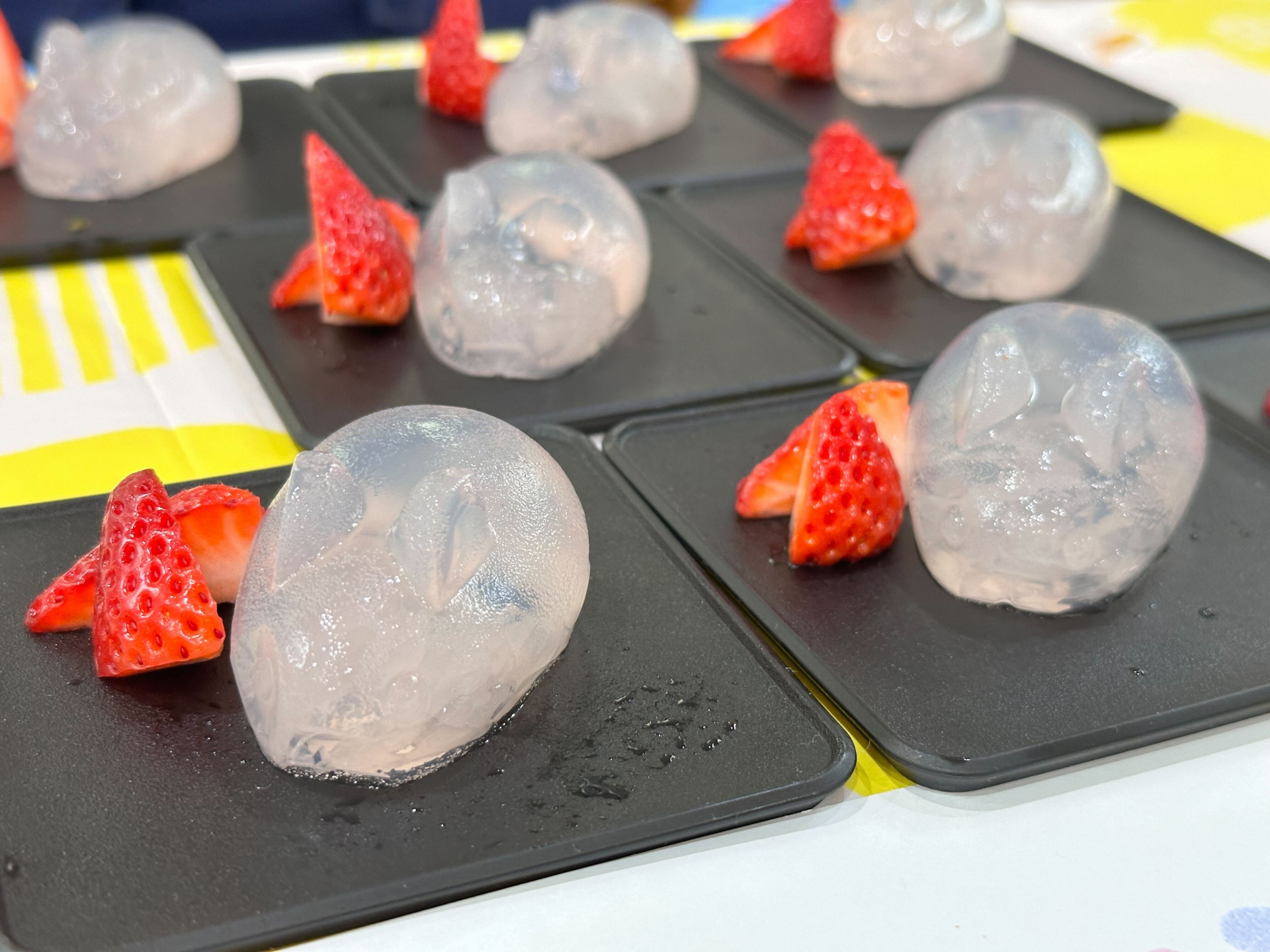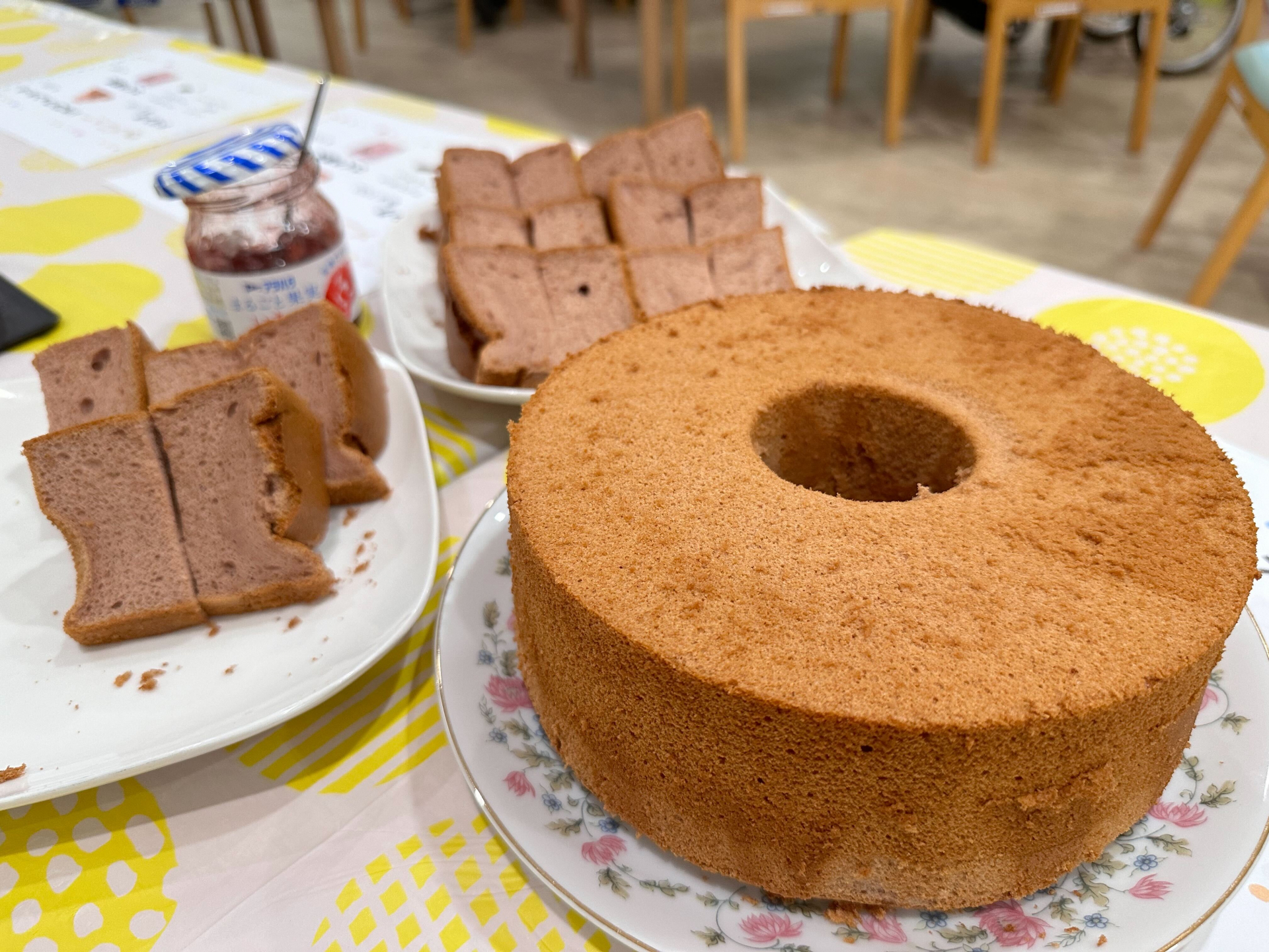 今回のデザートは、「いちごシフォンケーキ」と「さくら寒天」をご用意しました。