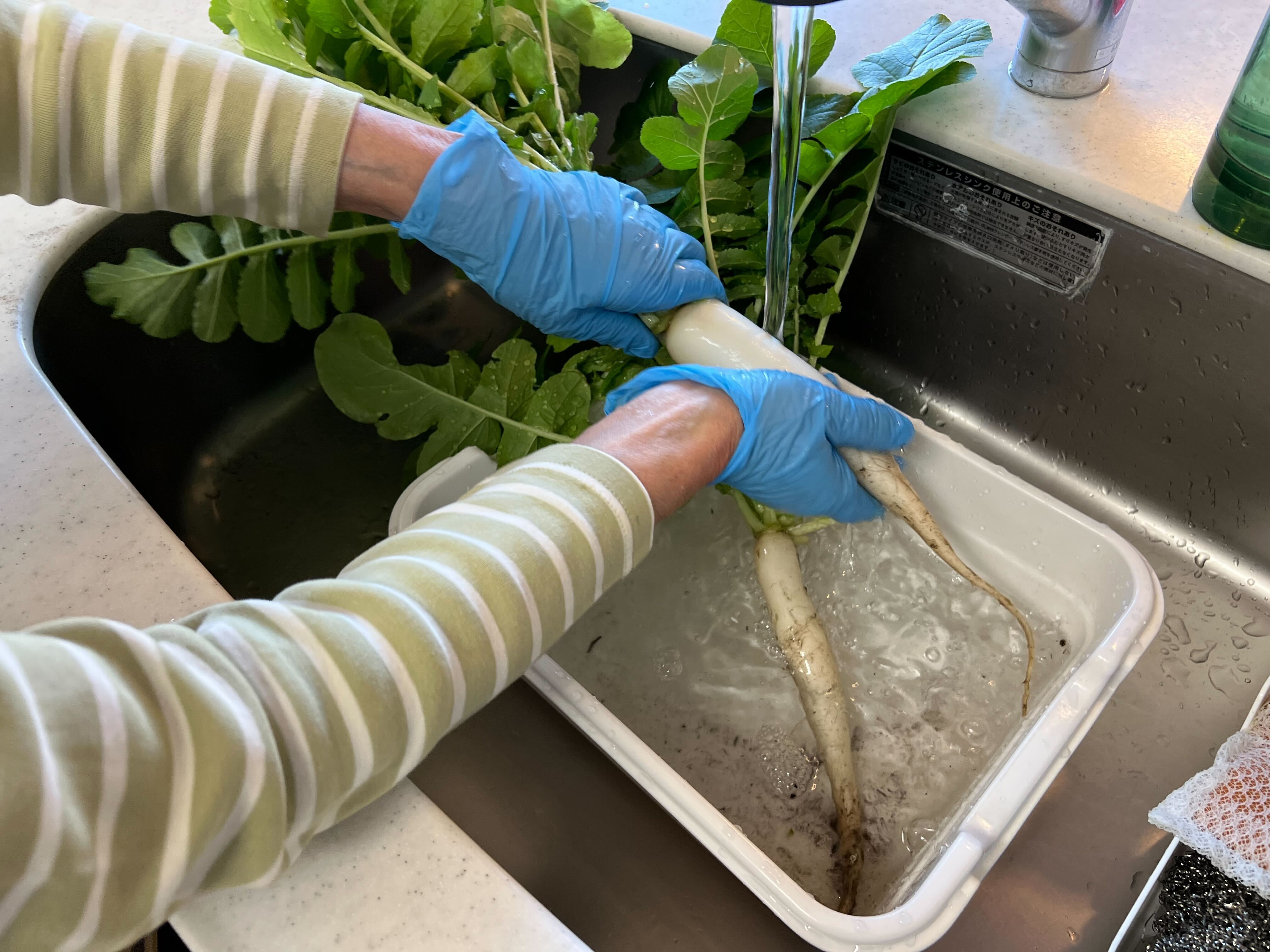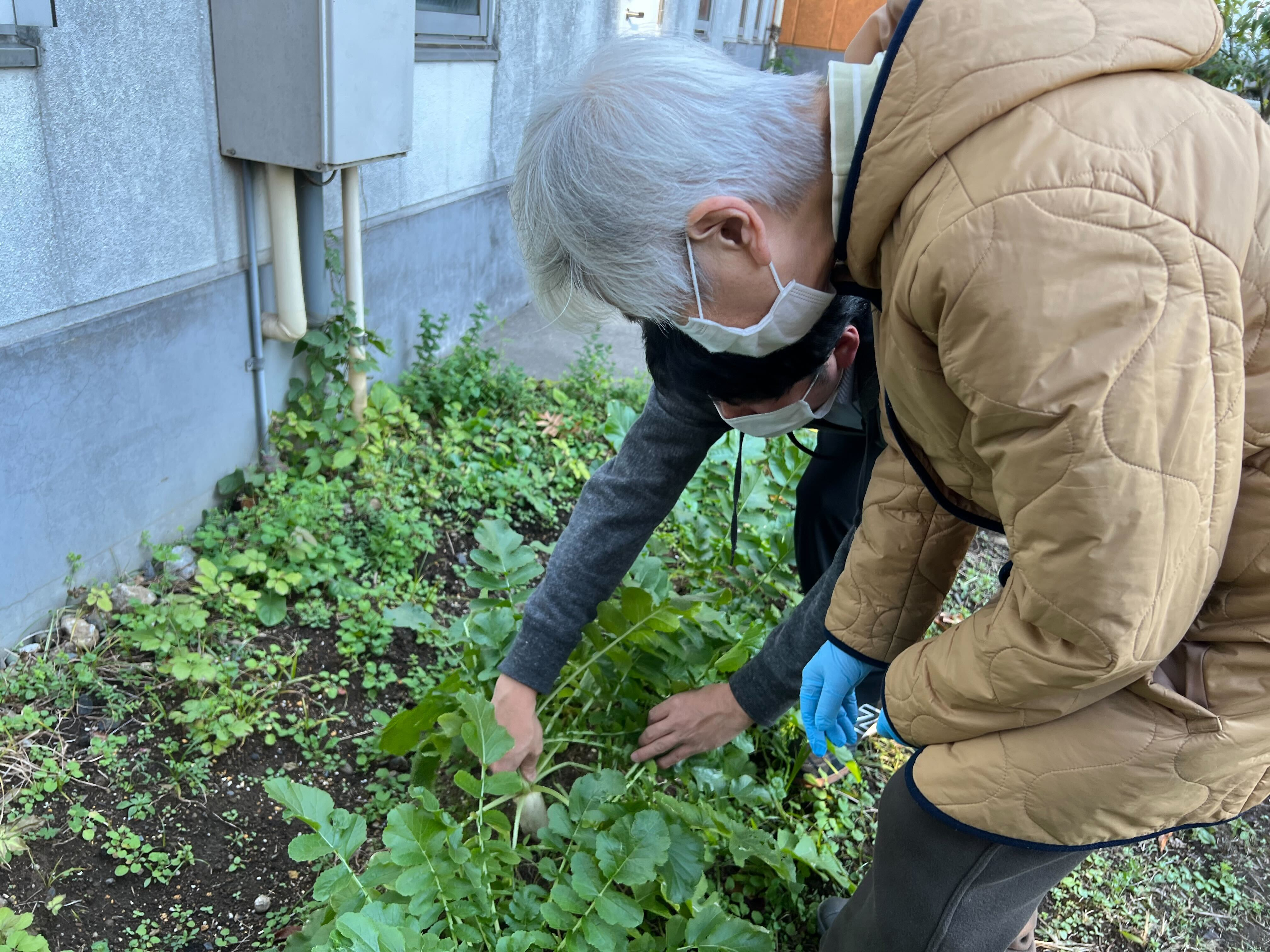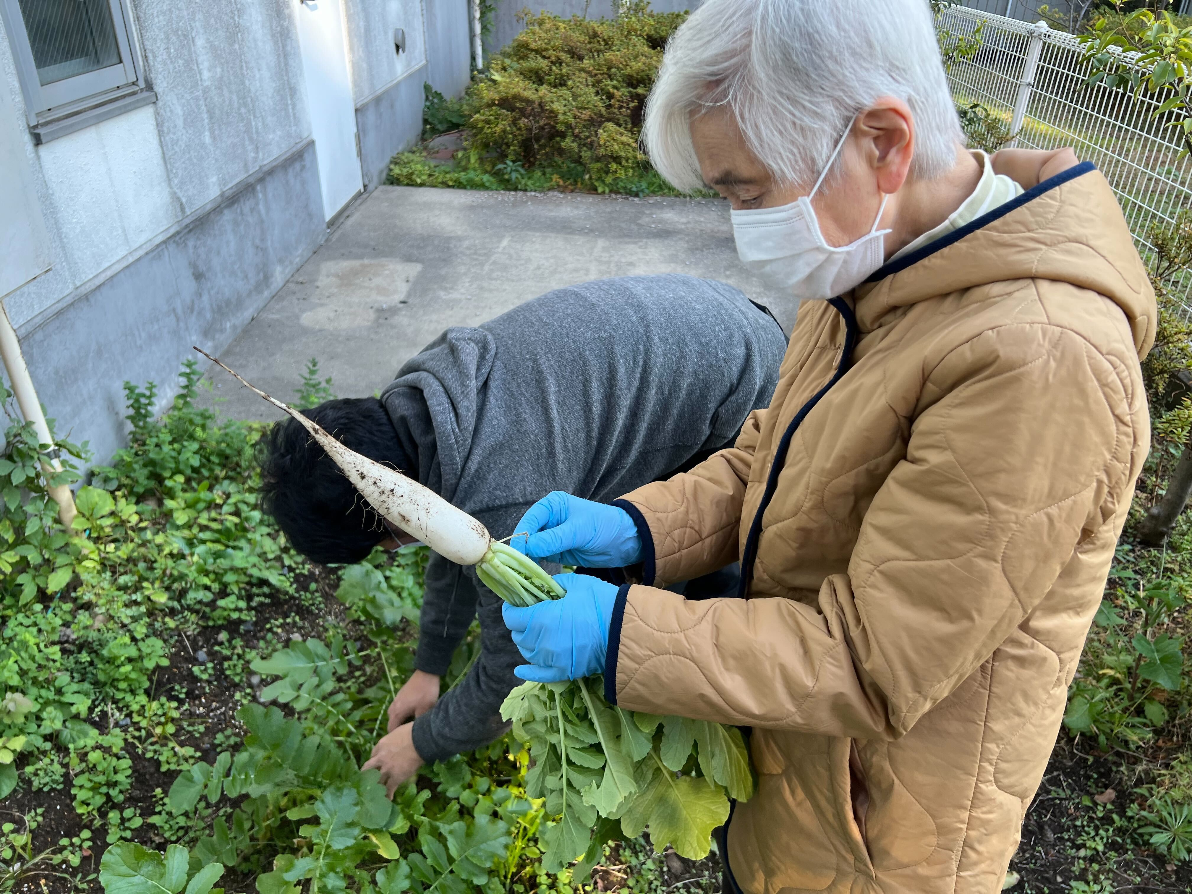 先日、ご利用者様と一緒に育てていた大根を数本引っこ抜いてきました