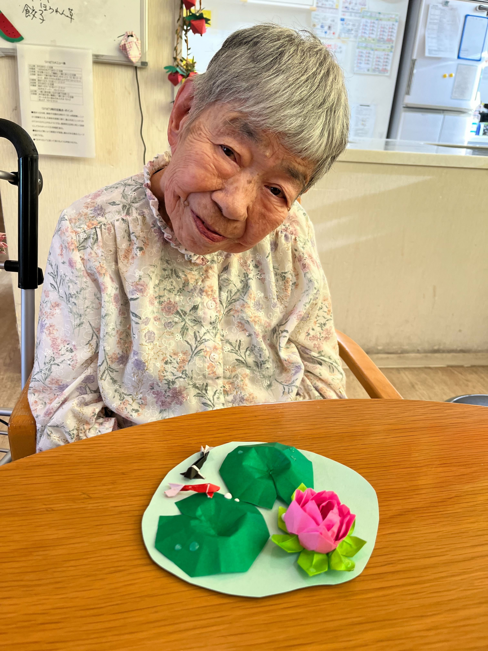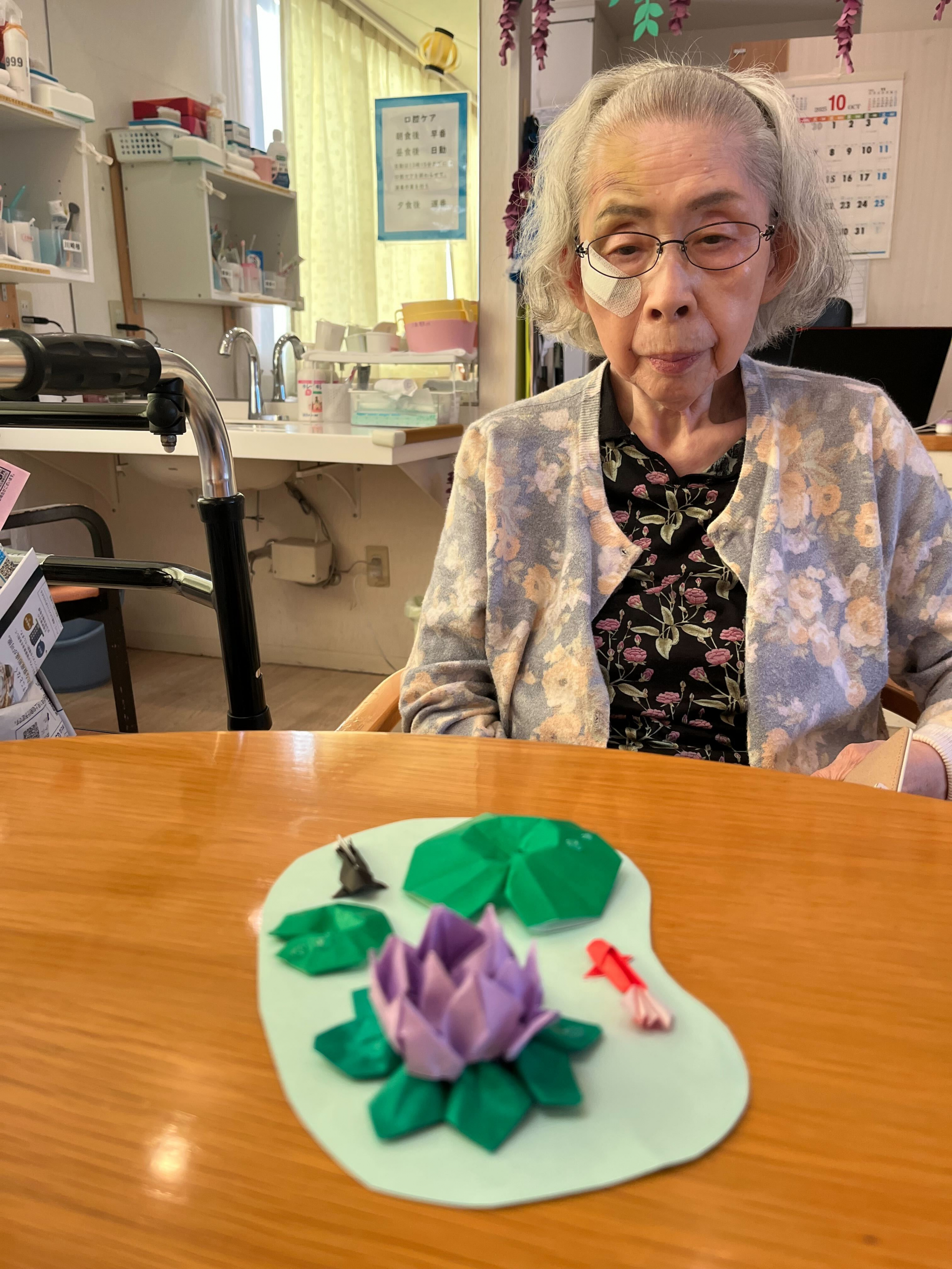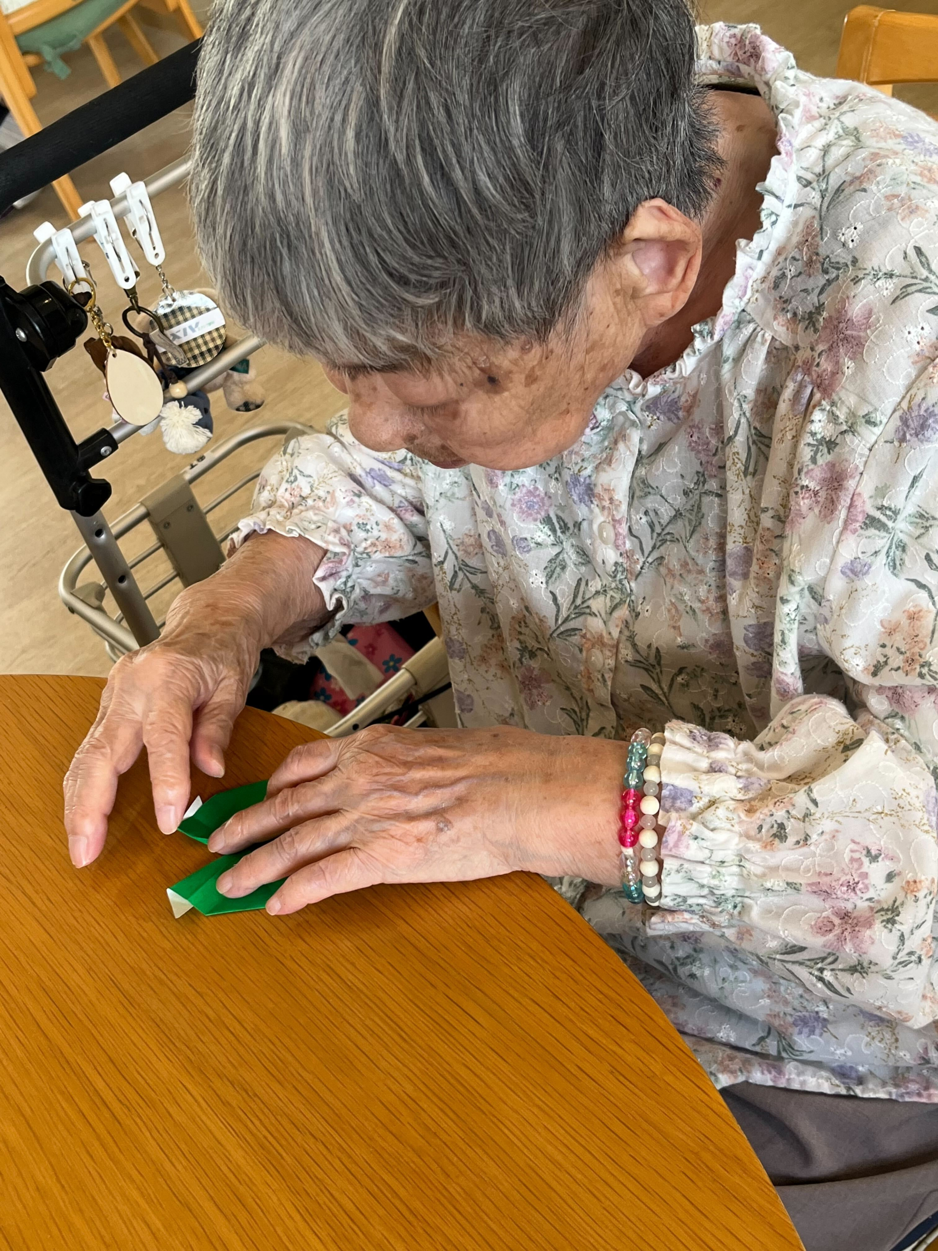 皆様こんにちは。段々と秋らしくなってはきていますが、寒暖差の激しい日々が続きそうです。体調管理には十分お気を付け下さい。さて、今回は折り紙です。皆さん真剣な表情でスムーズに作りあげていました。