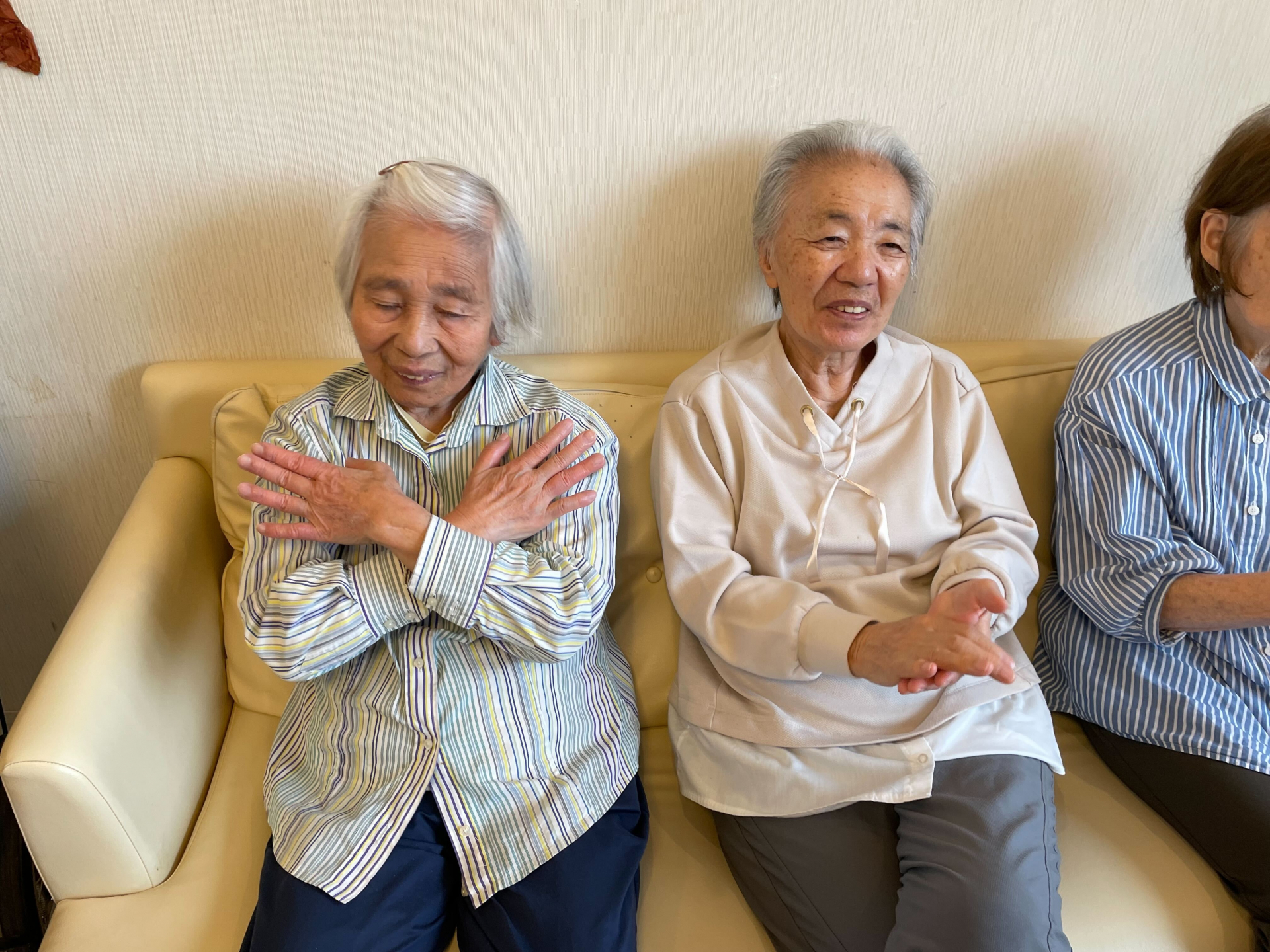 S様は珍しくソファーへ行きたいとの事で皆様と一緒にソファーで体操です♬