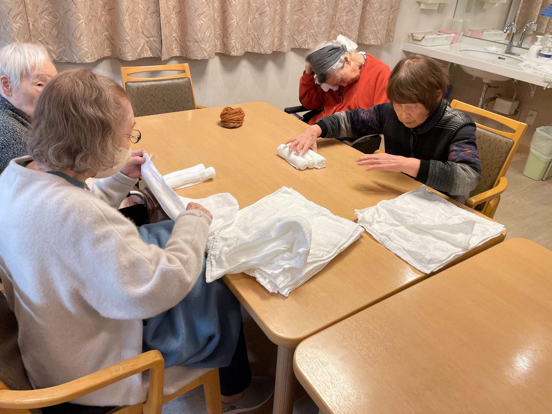 「しりとりゲーム」をするチーム、タオルたたみのお手伝いのチームとそれぞれ!(*^_^*)