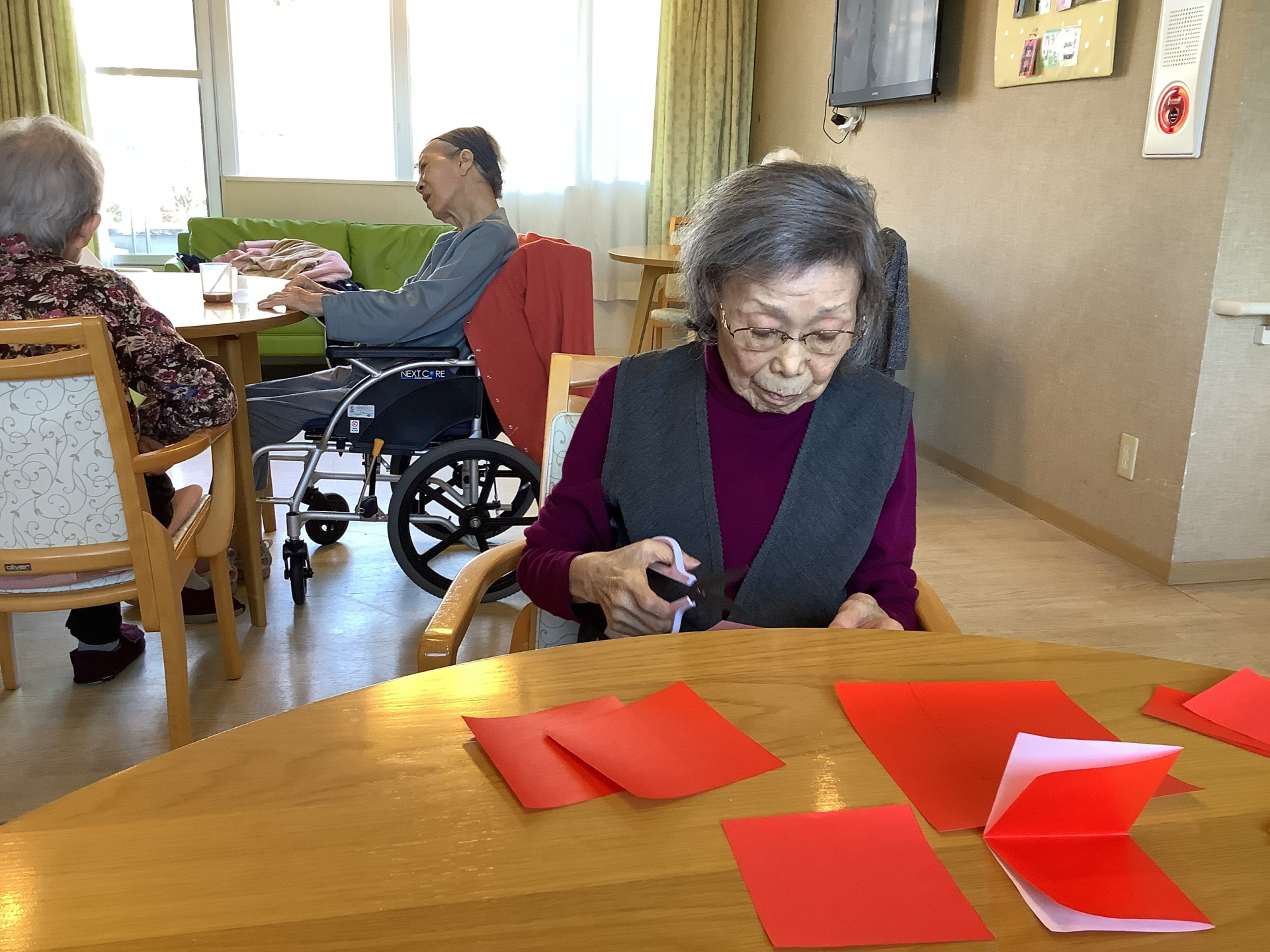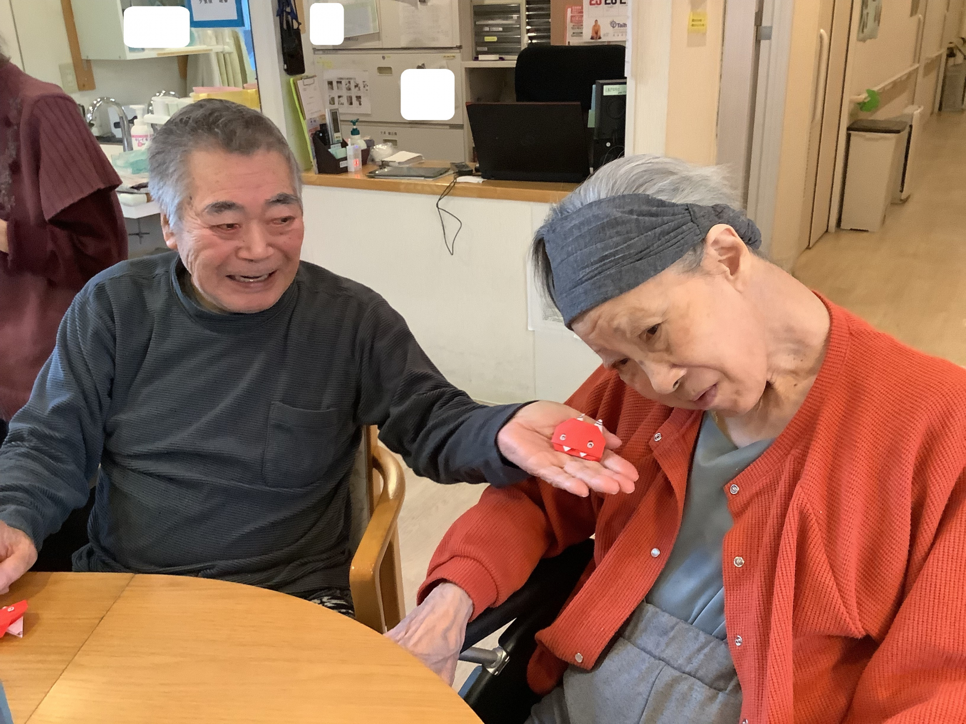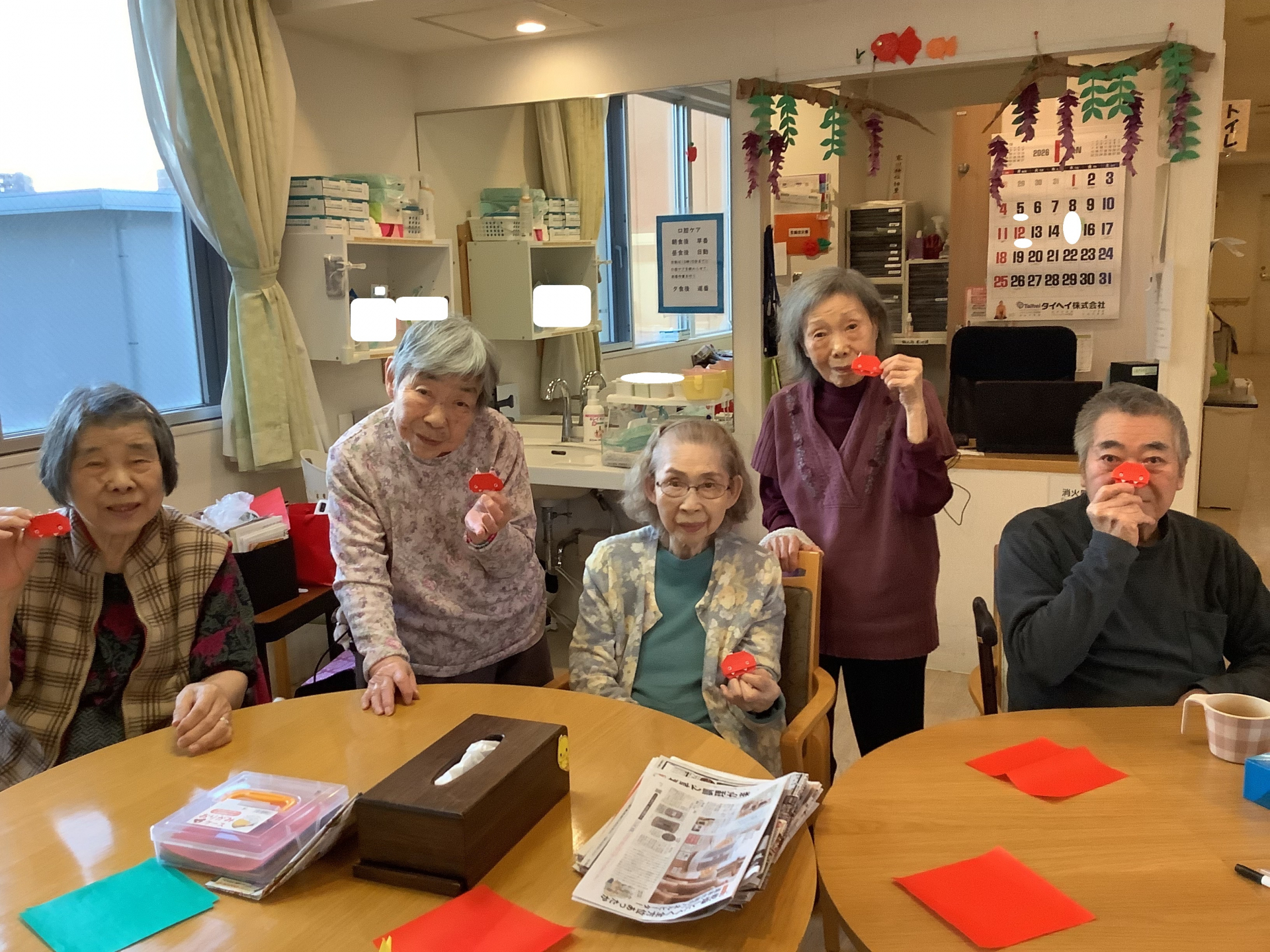 さて2階では節分に向けて折り紙で「鬼作り」を行いました♬