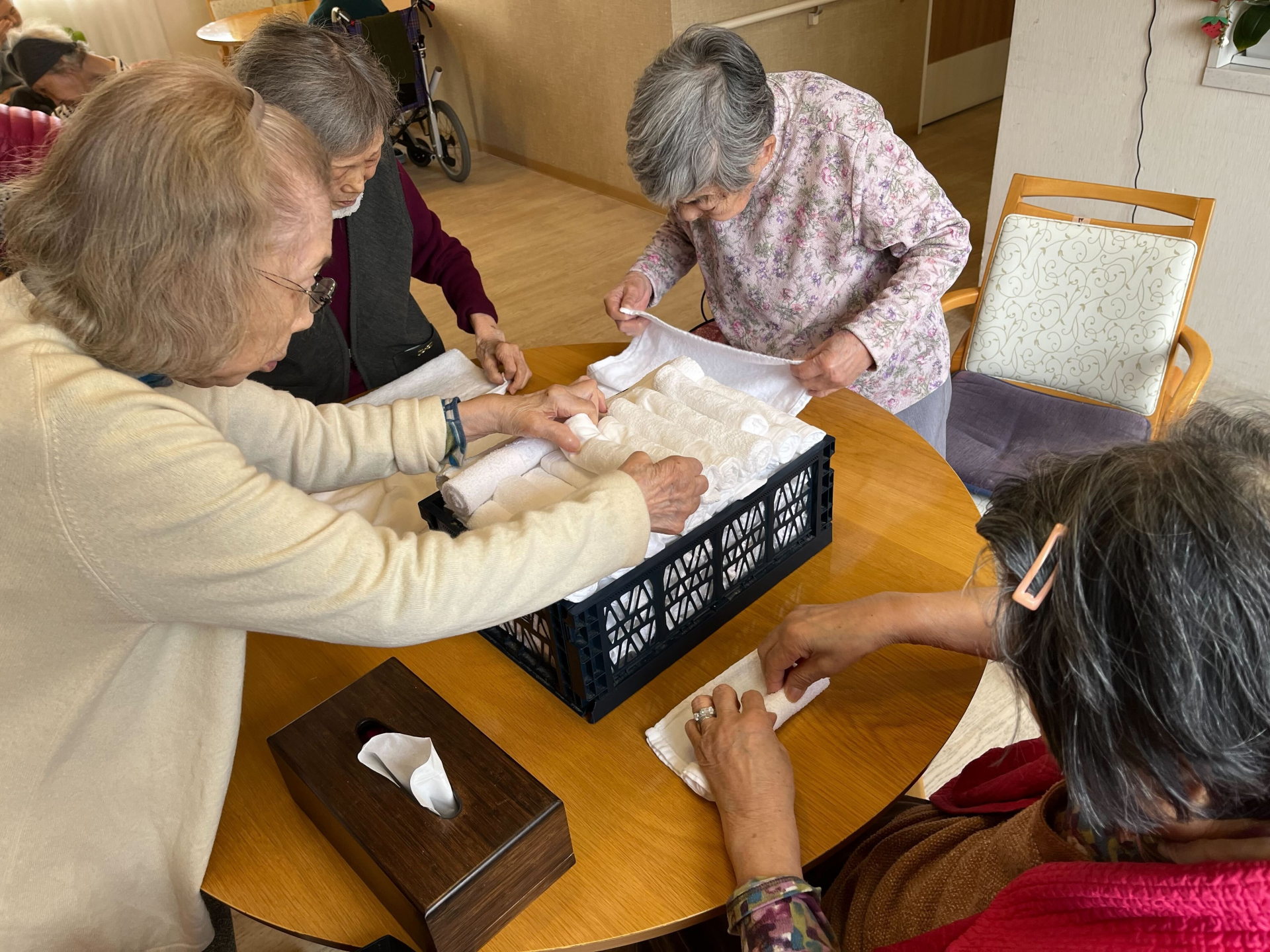 タオルたたみ、新聞たたみ、洗濯物・・・