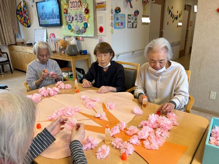 ホームの周りでも桜が咲いたら、皆でお花見に行きたいですね♡