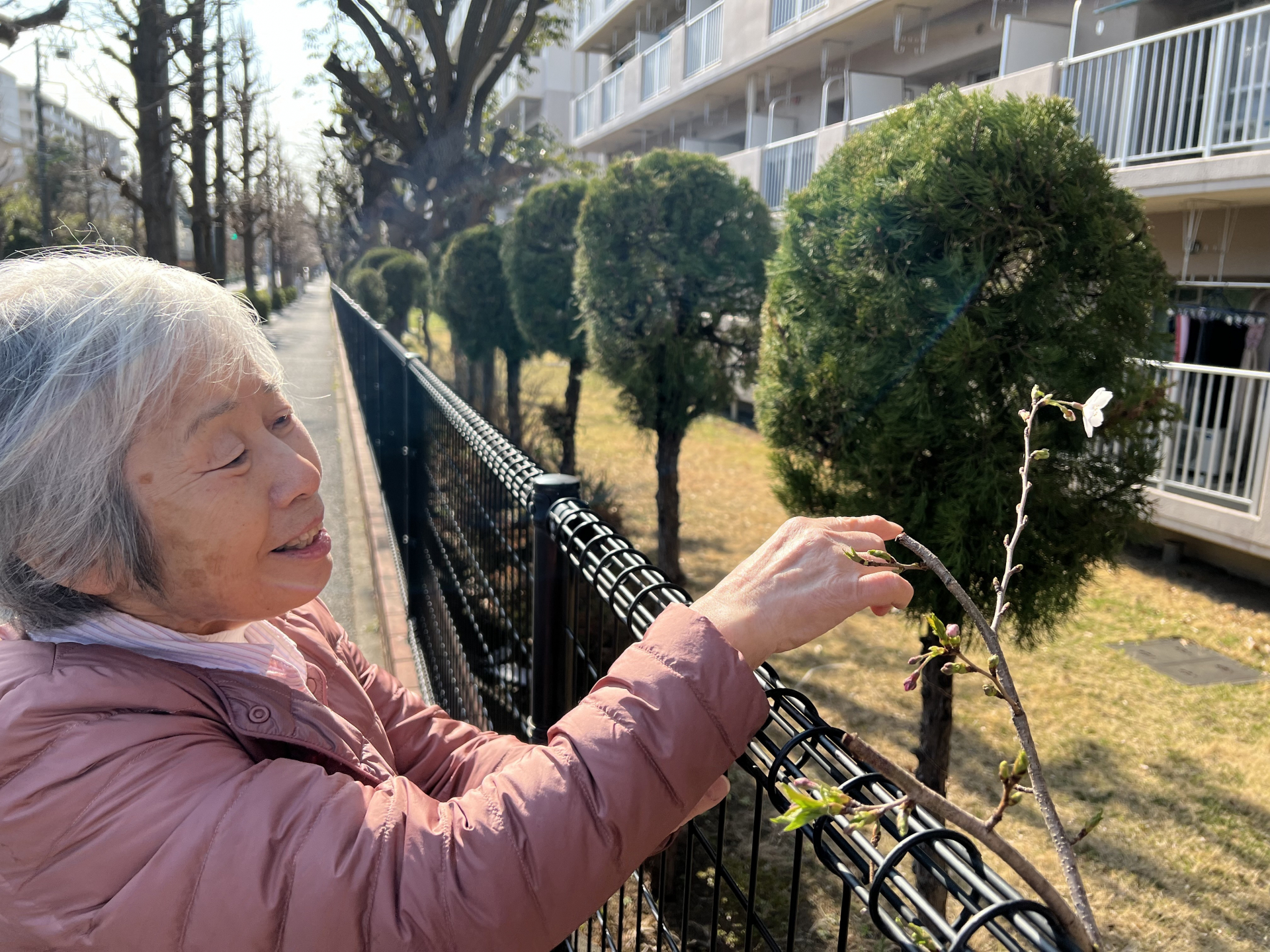 K様の居室から何と桜が見えるじゃありませんか!!