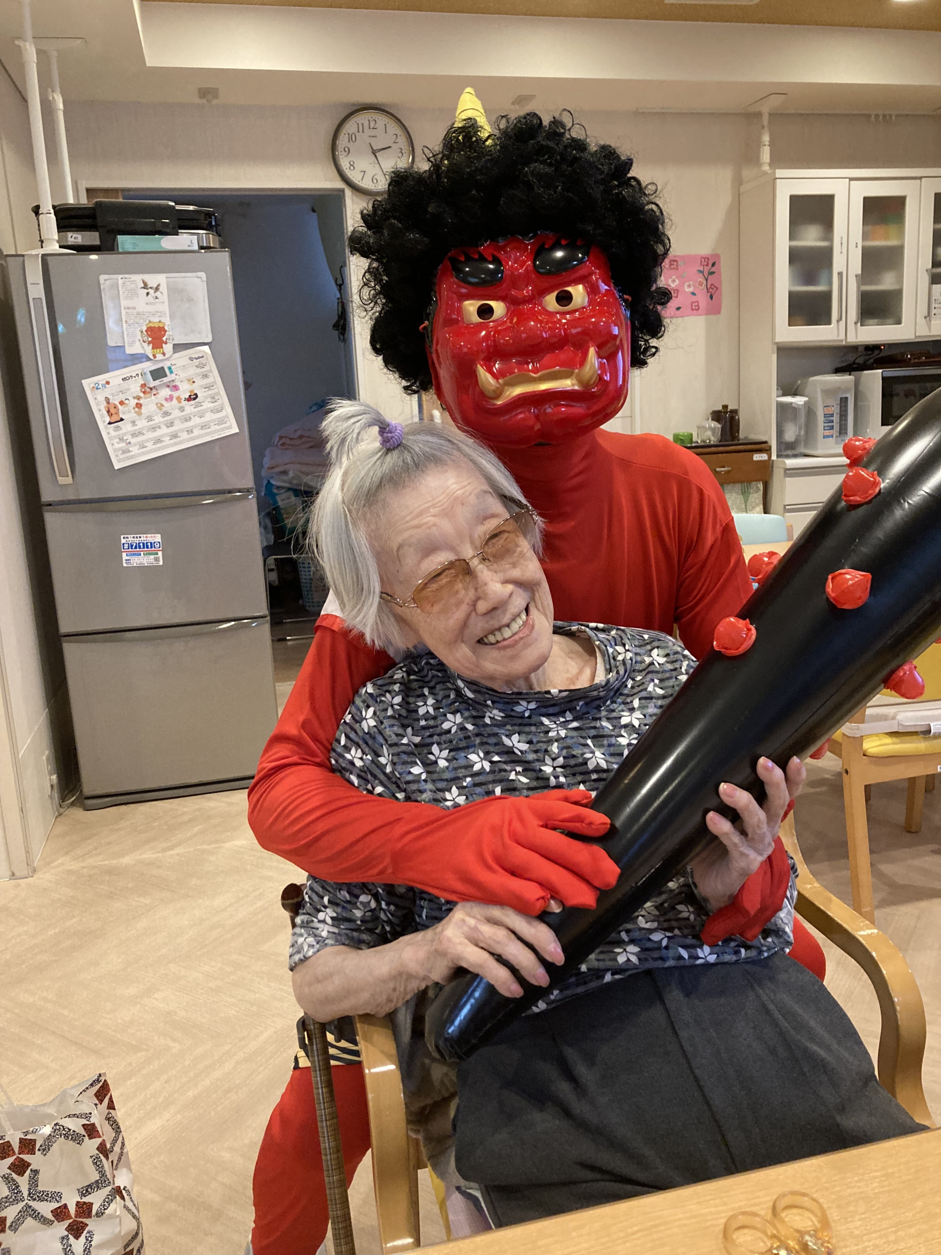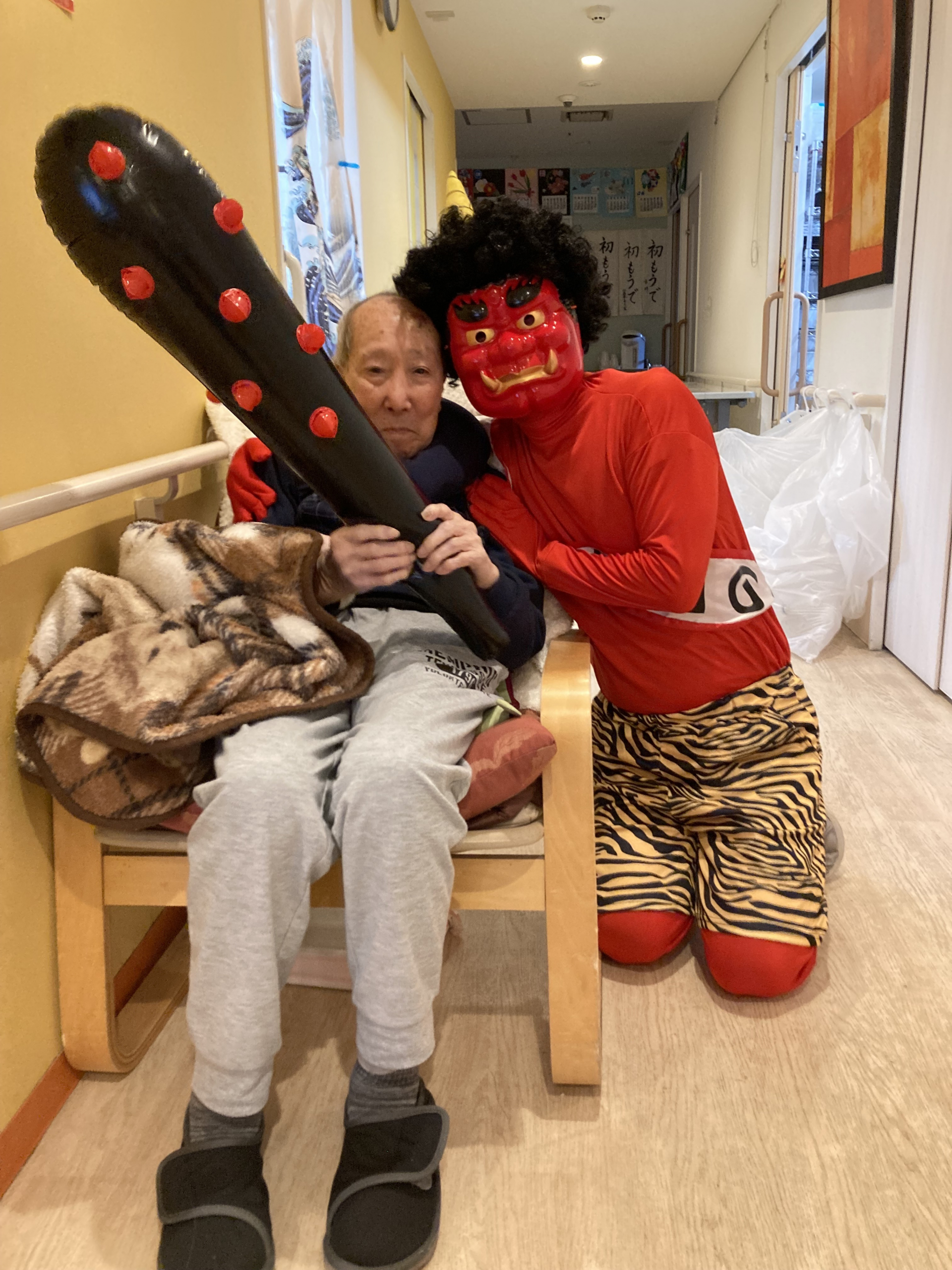 優っくり村池尻では、皆様と赤鬼退治で豆まきを行いました♪