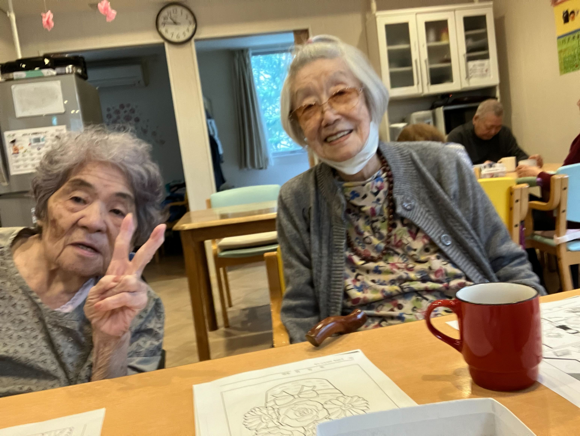 皆様普段は一息休まれたり楽しくお話しされていますが脳トレやぬり絵に取り組むときの表情は一変してとても集中されています!!
