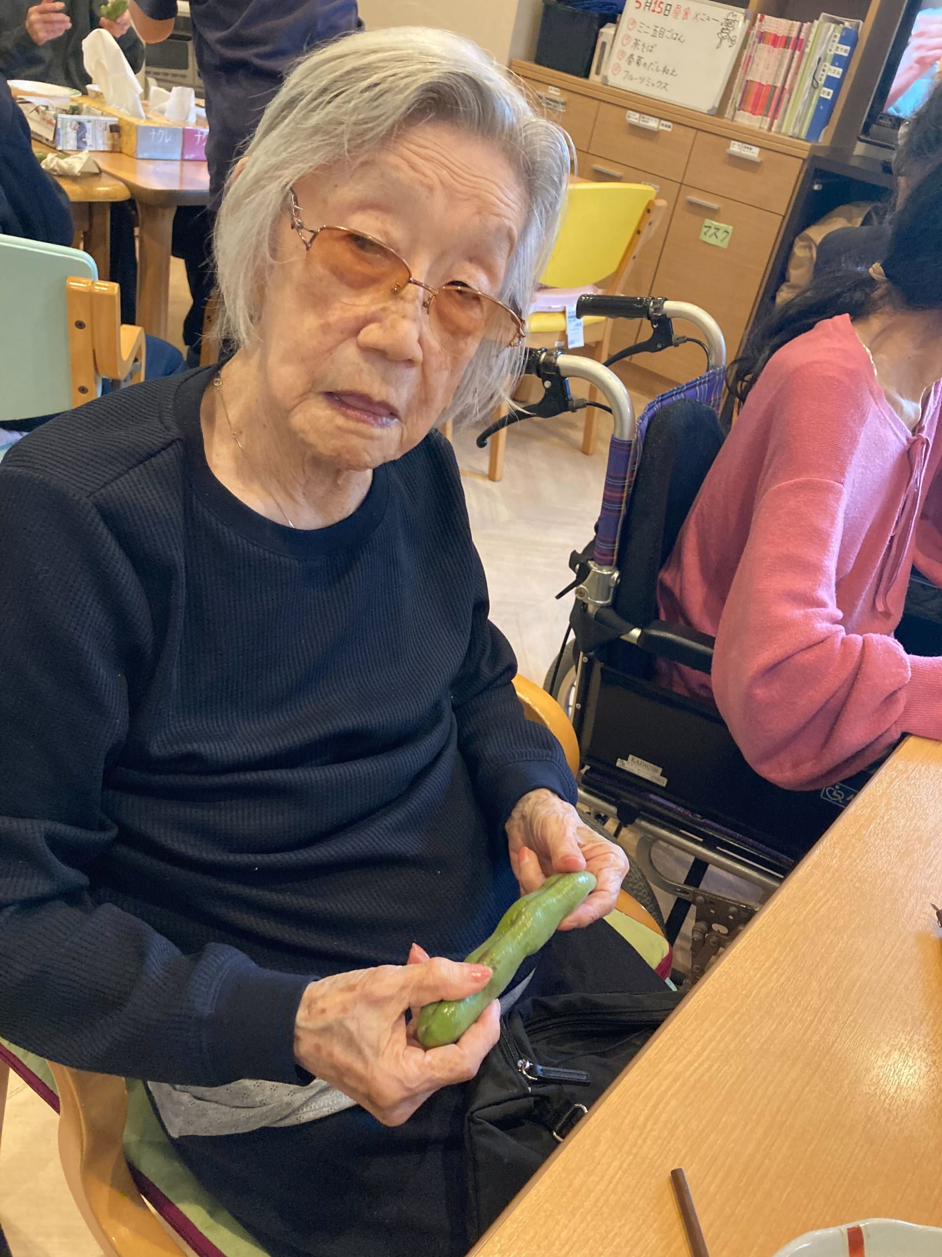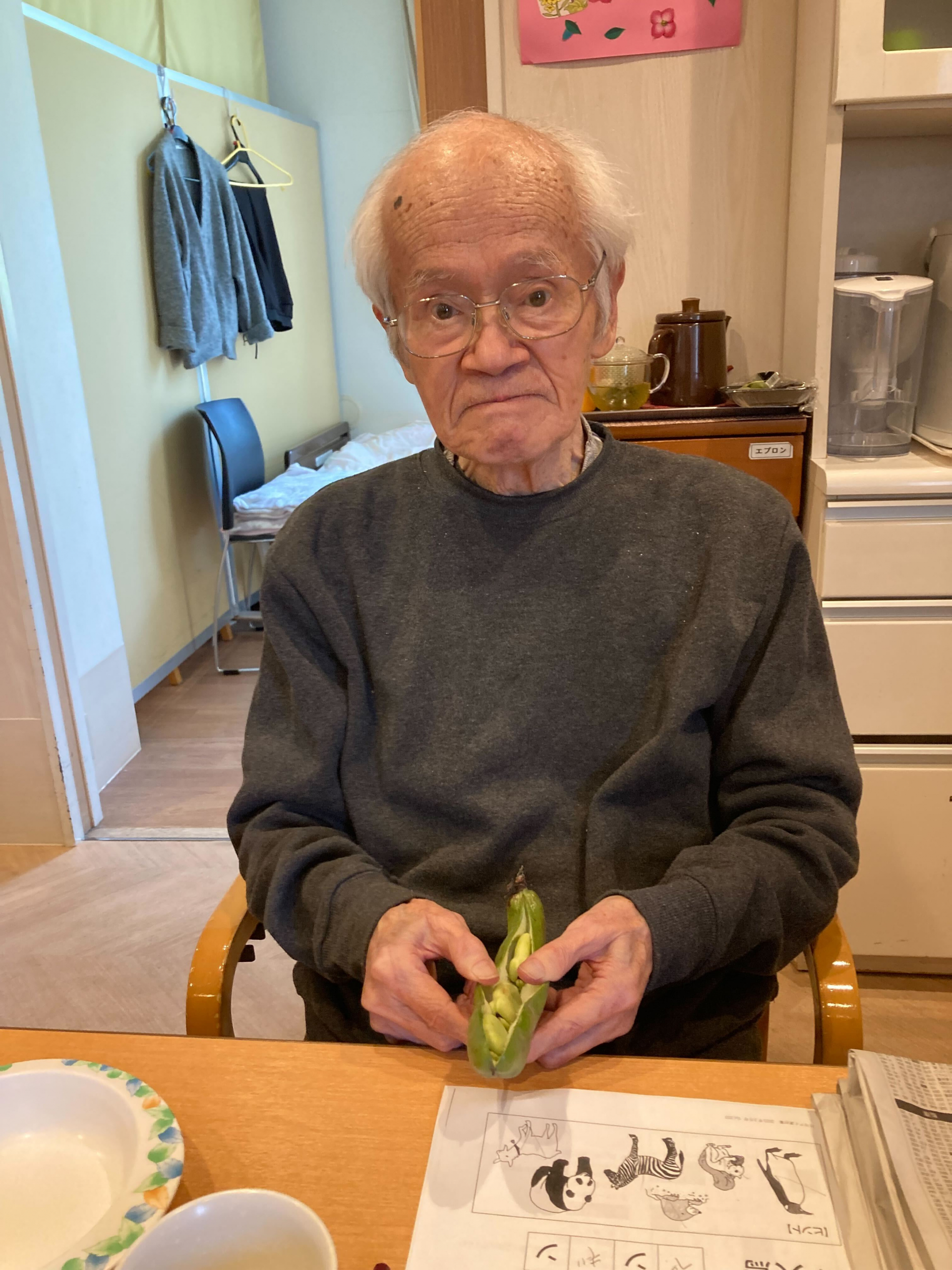 先日またまた職員の方からそら豆をいただき、皆様でそら豆剥きを行いました!!