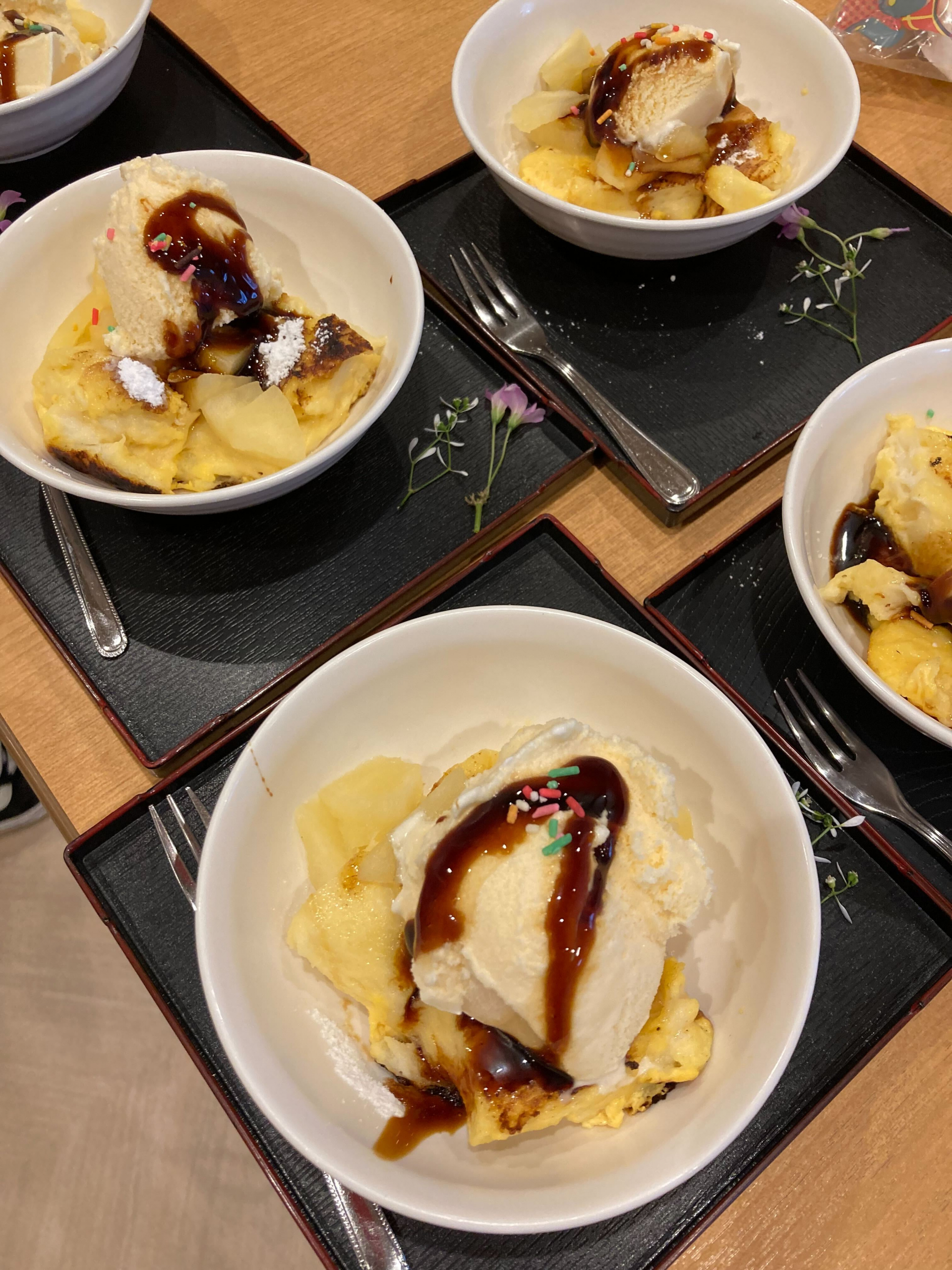 この時期とても暑い日が続いているのでフレンチトーストの上にはバニラアイスとりんごをトッピング!!
