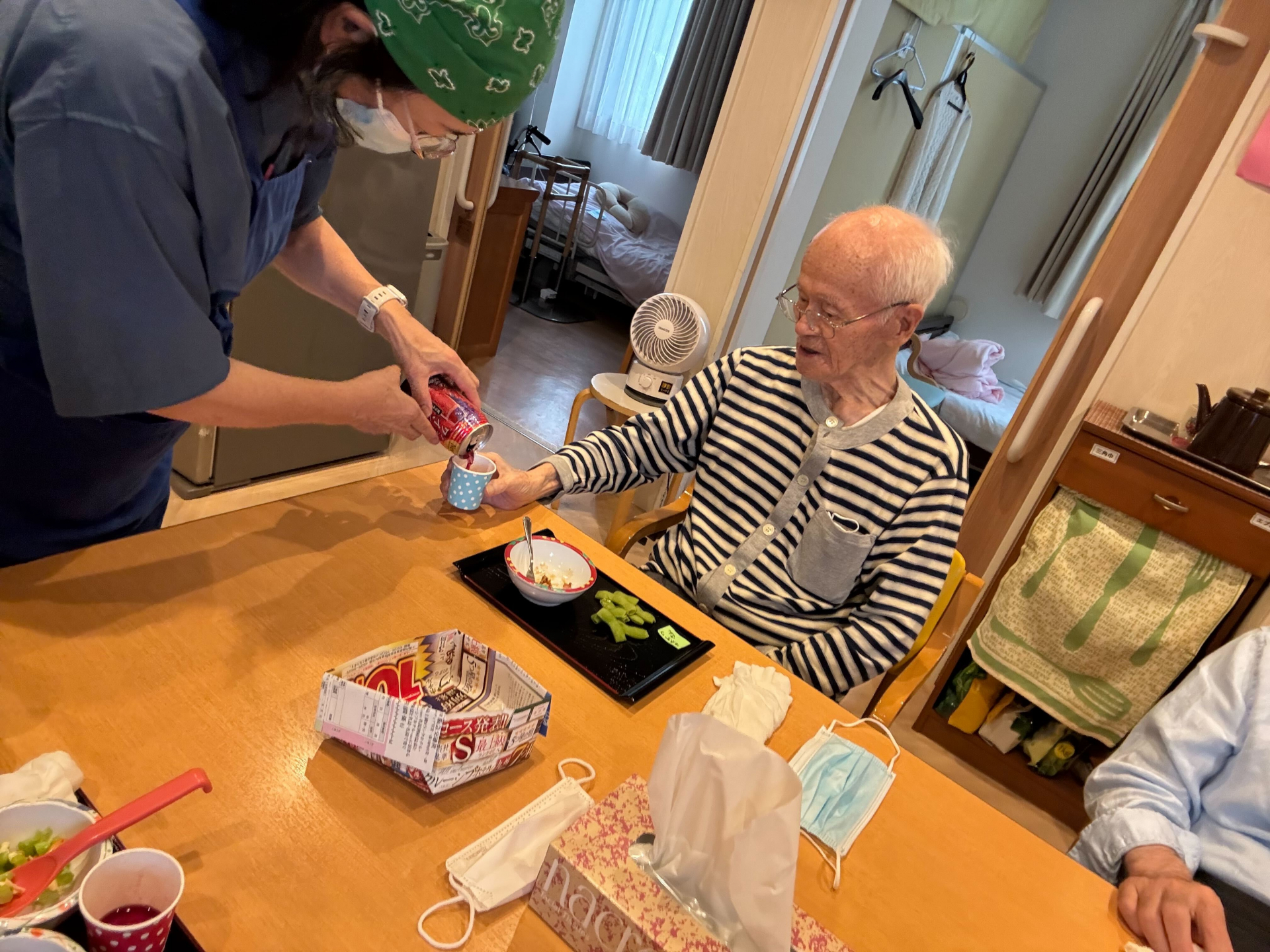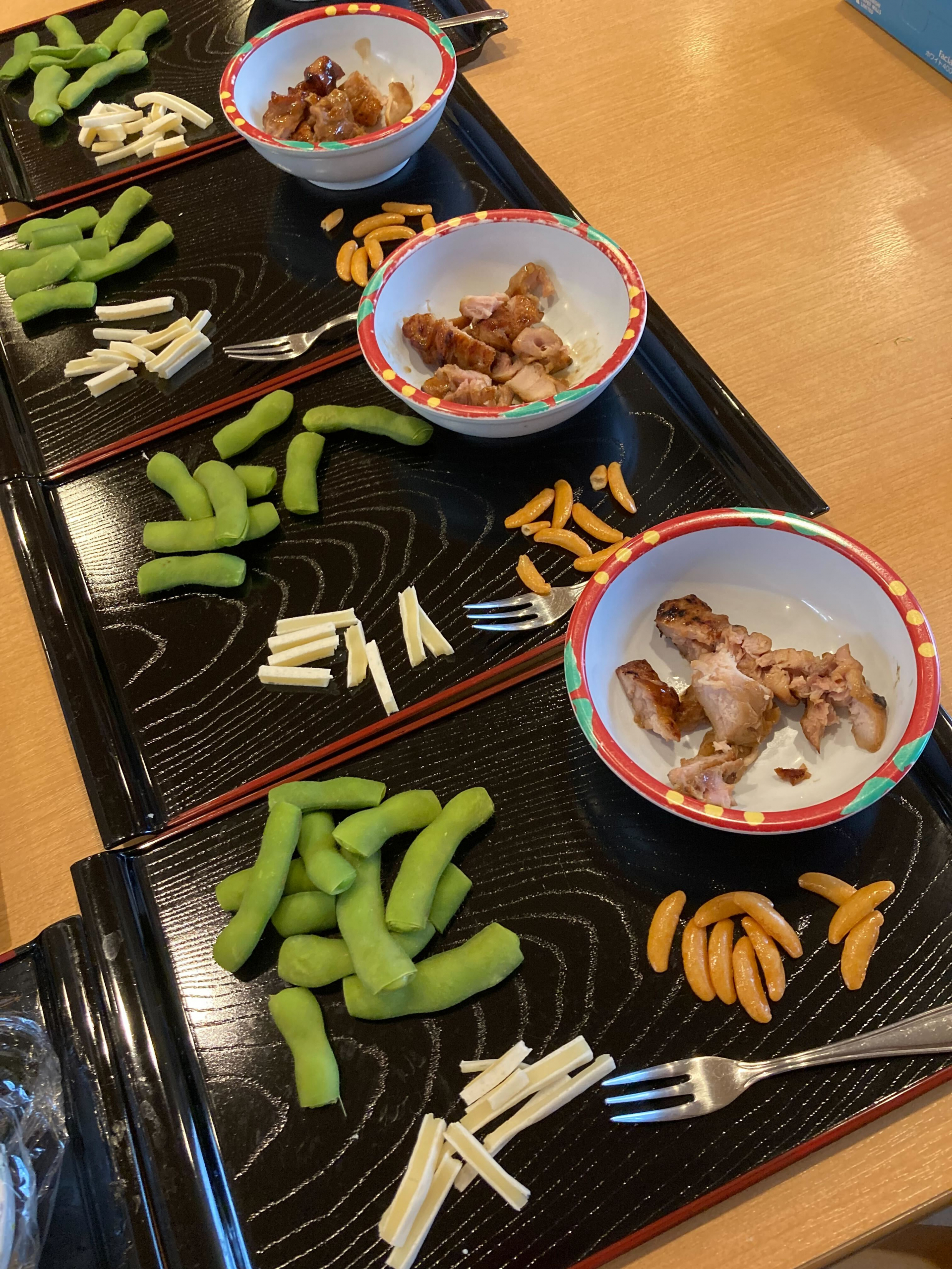 今回は枝豆などに加えて焼き鳥を皆様にお出ししました!!