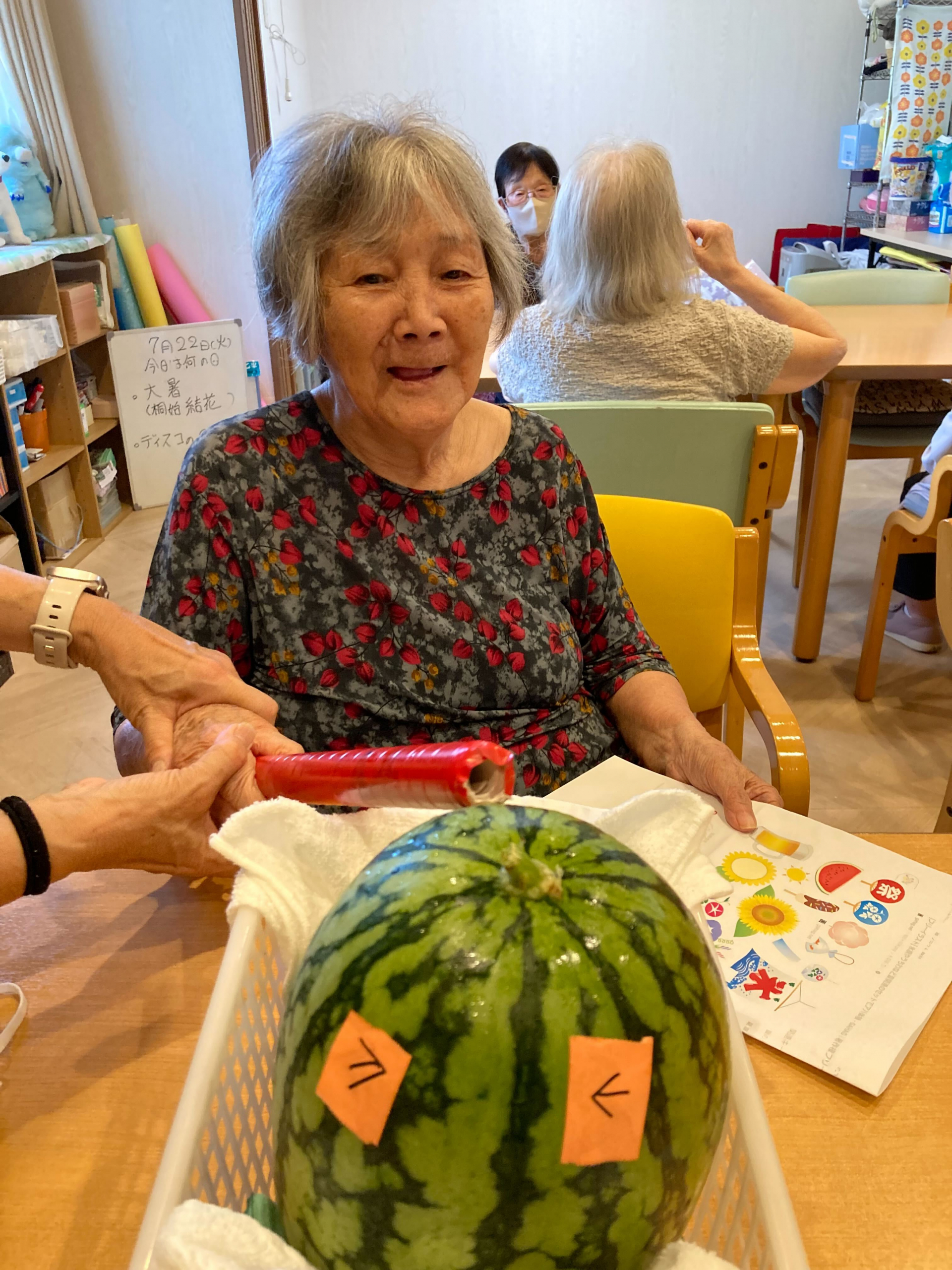【小規模多機能 池尻 レク】皆様とスイカ割り!!