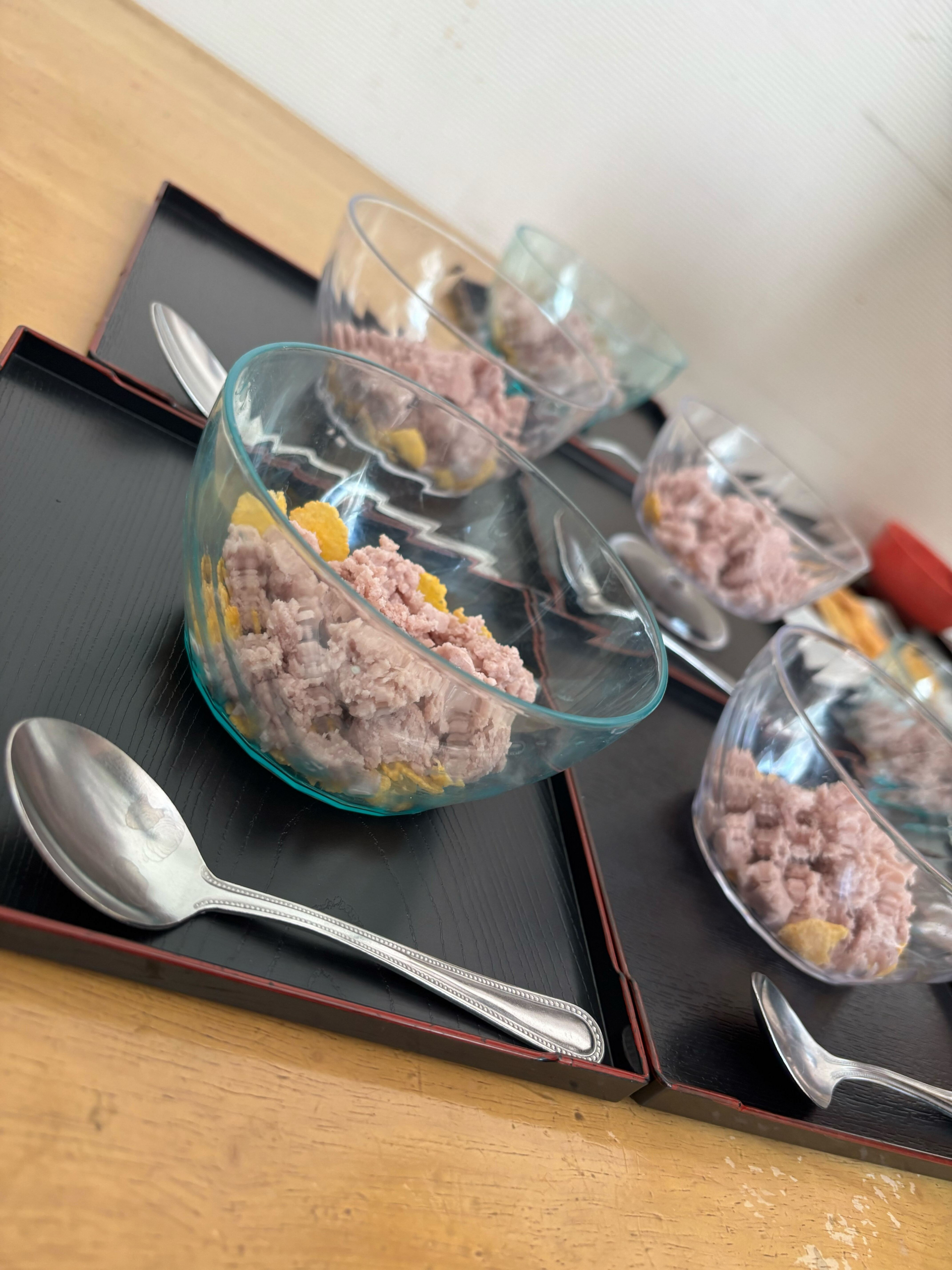 小豆とヨーグルトを冷凍し、小豆ヨーグルトアイスを事前に作りおやつの時間にお出ししました!!