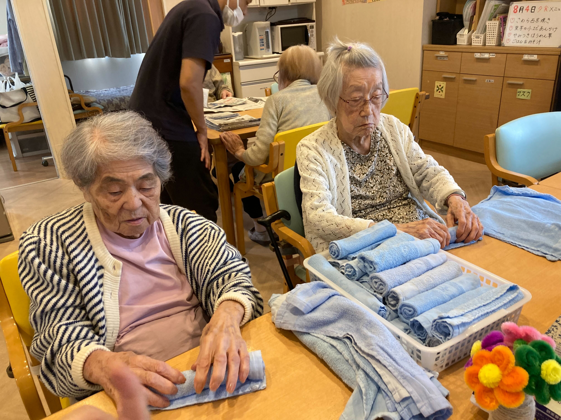 【介護 お手伝い】皆様仲良くおしぼり畳みm(_ _)m