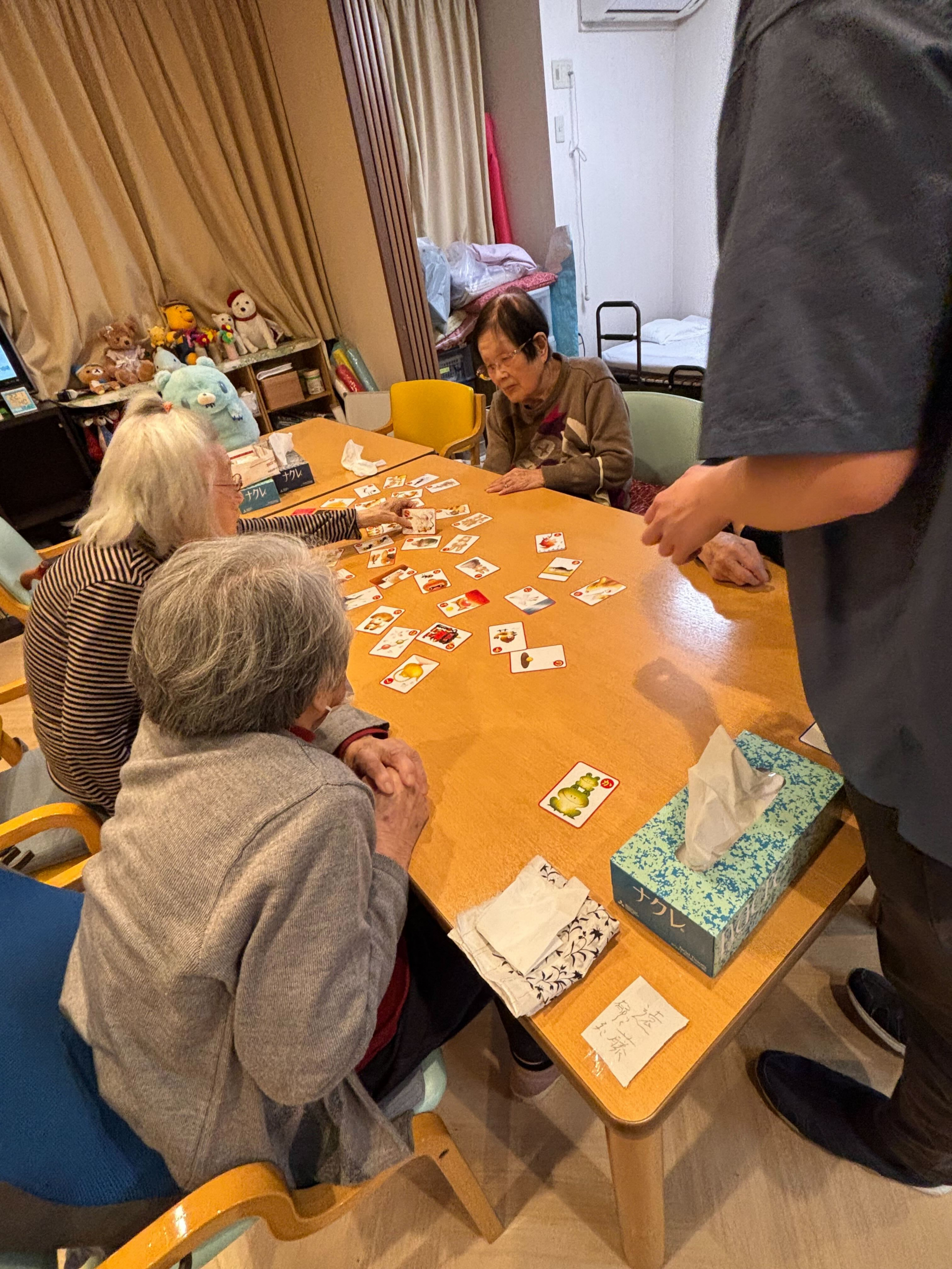 夜の時間に皆さんで一緒にカルタゲームを楽しまれました。