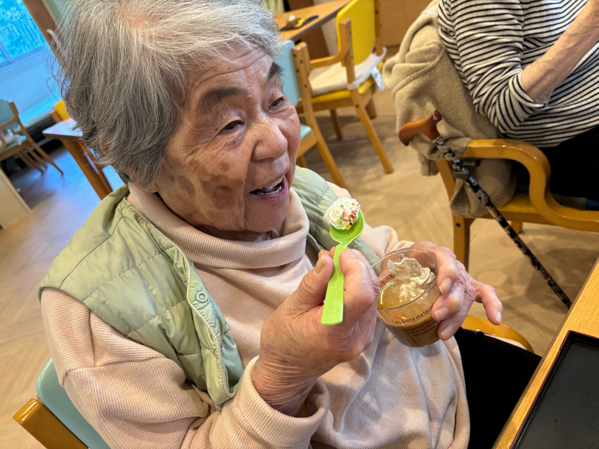 「おいしいね」「ちょうどいい甘さ」と会話も弾み、ゆったりとしたおやつの時間を過ごされました。