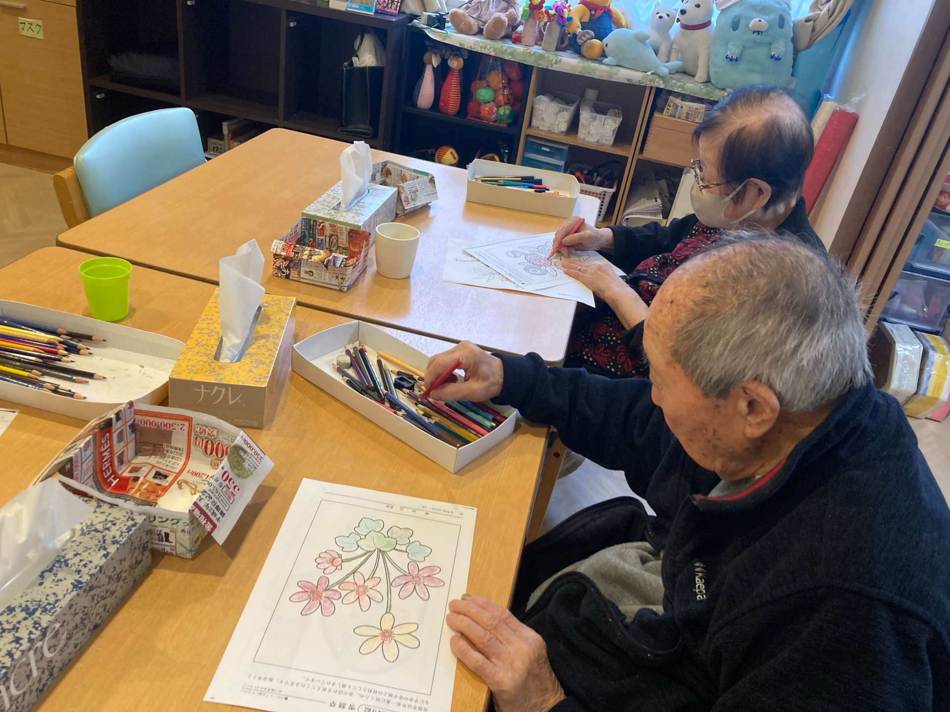 本日は利用者様が塗り絵のレクリエーションに参加されました。