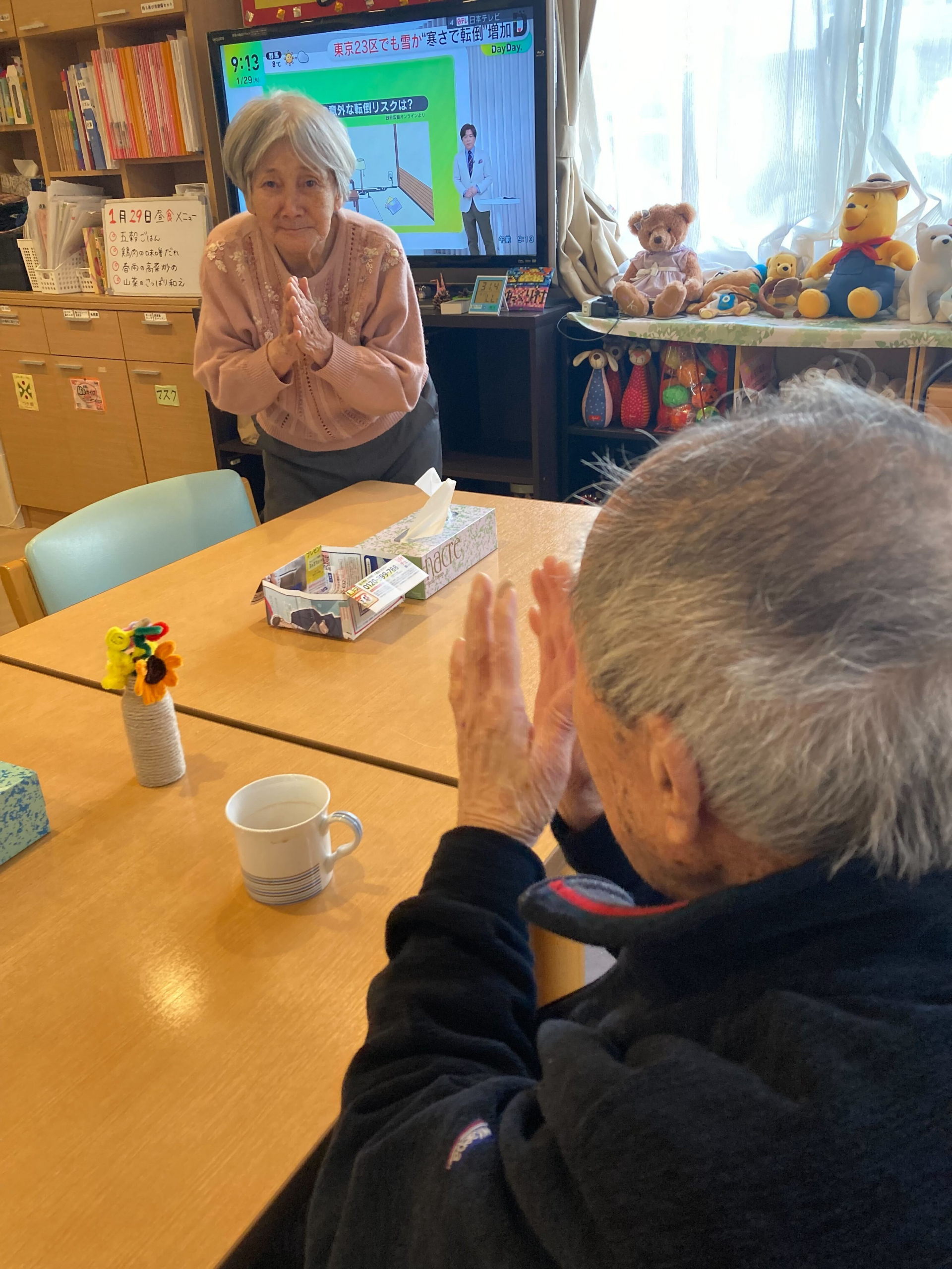 こちらのご利用者様、他のご利用者様と目が合うと手を合わせて挨拶を始めました( *´艸`)