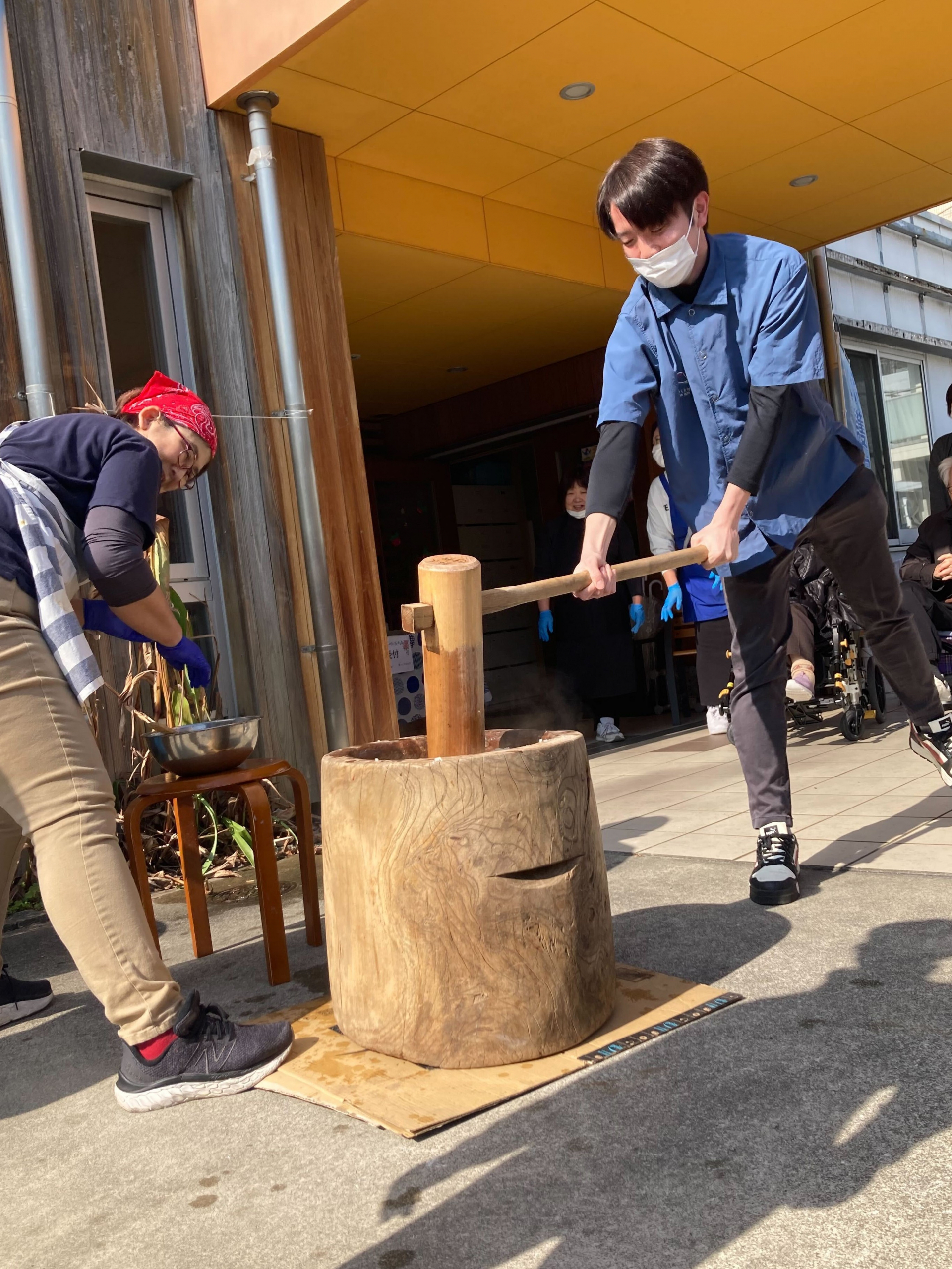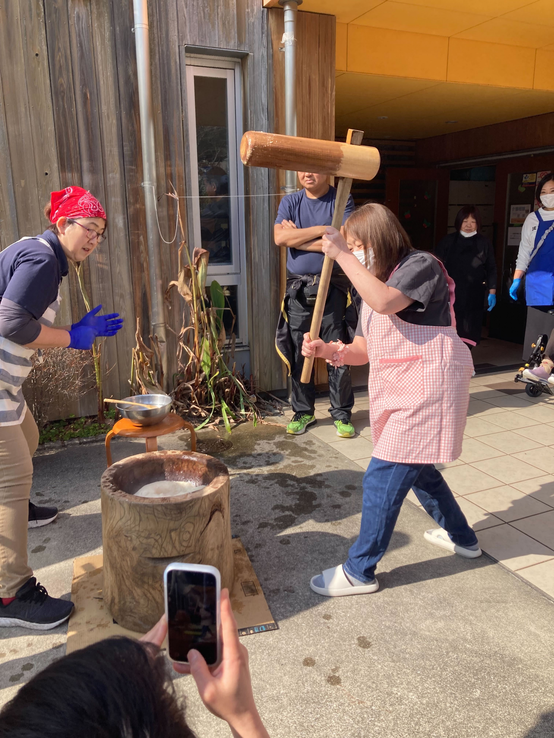なかなか難しい餅つき、次は職員以外もご紹介していきますので是非ご覧下さい!