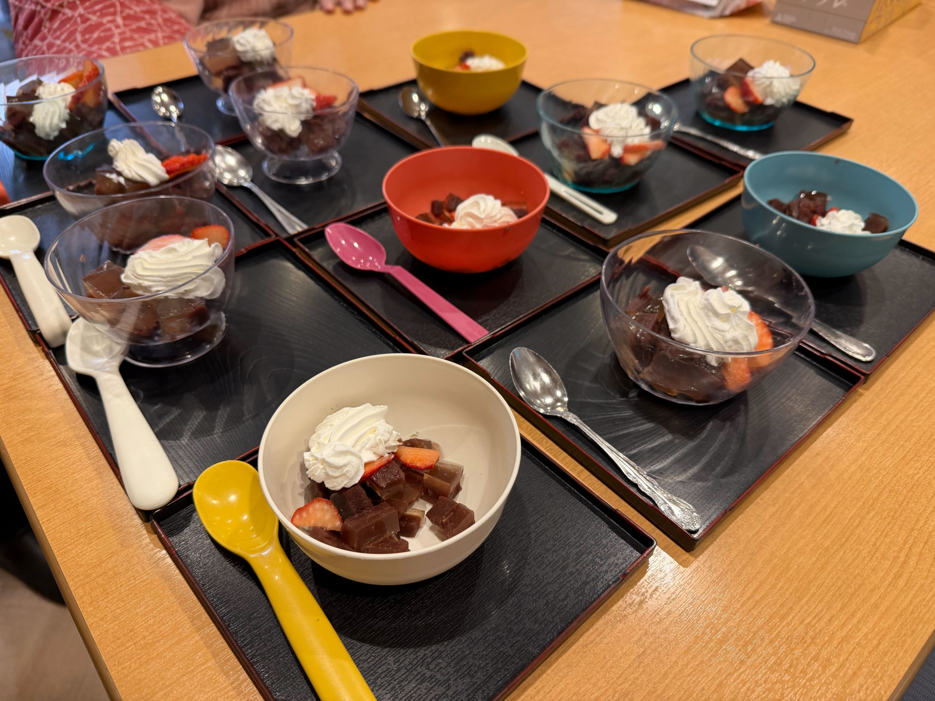 本日のおやつは、水羊羹にいちごとホイップクリームを添えて提供しました。