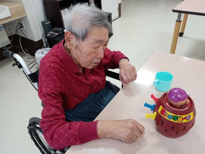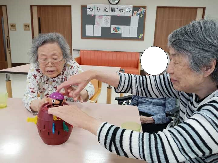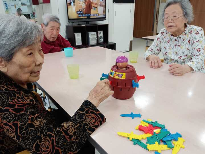 本日入居されたT様をお誘いして「黒ひげ危機一髪!」で遊びました(^^)