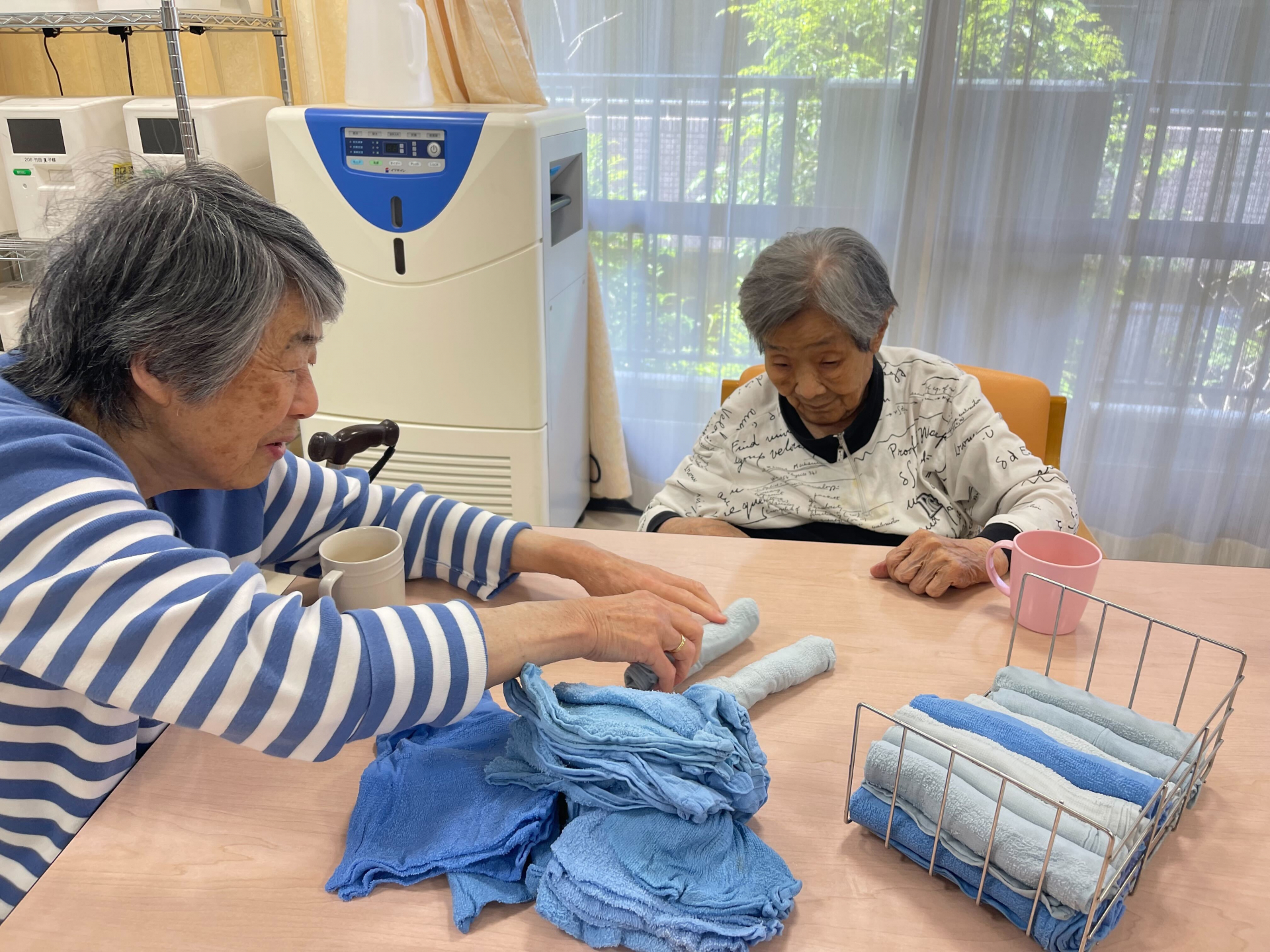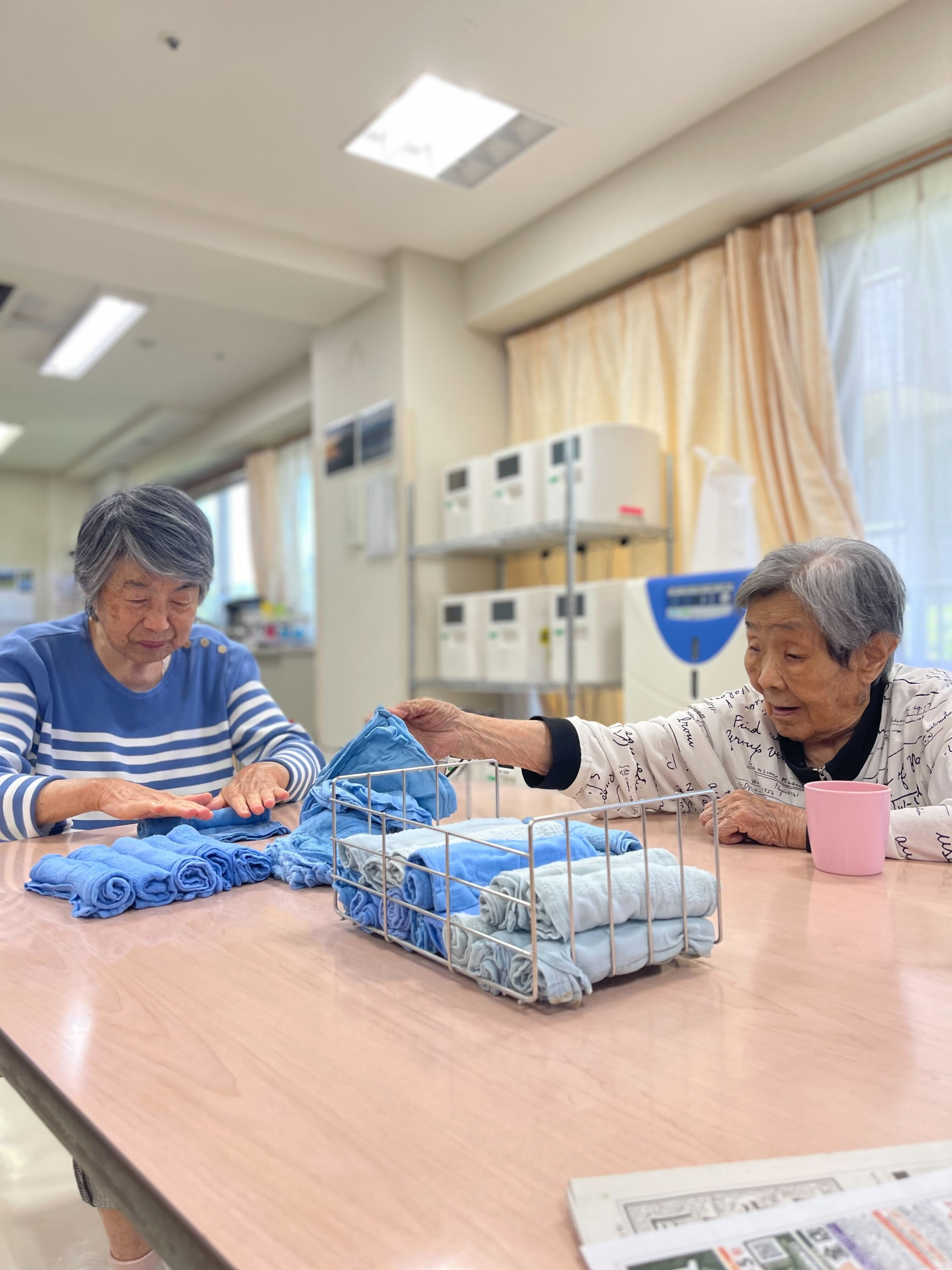 本日2階で一緒に清拭タオルを畳みました。