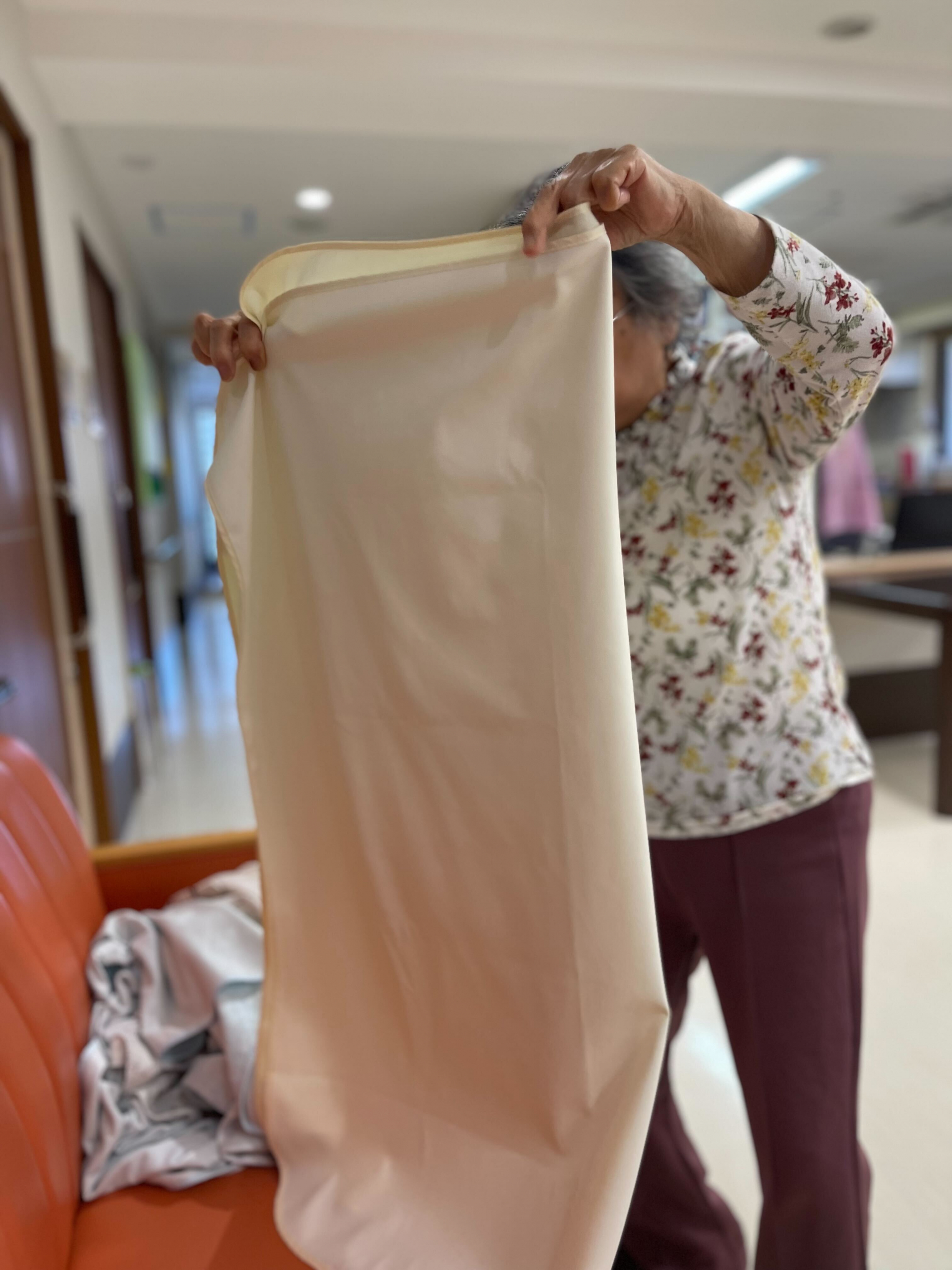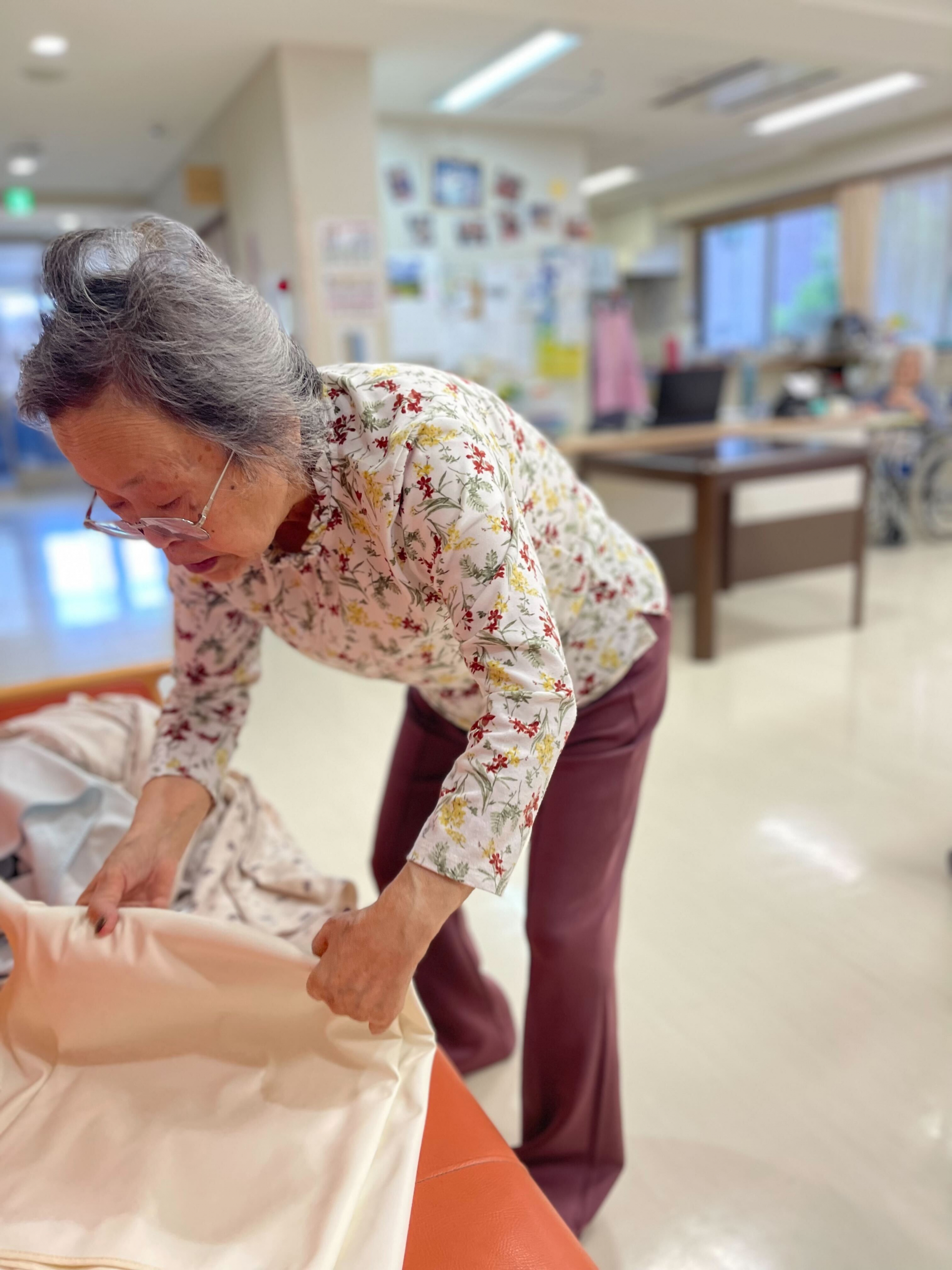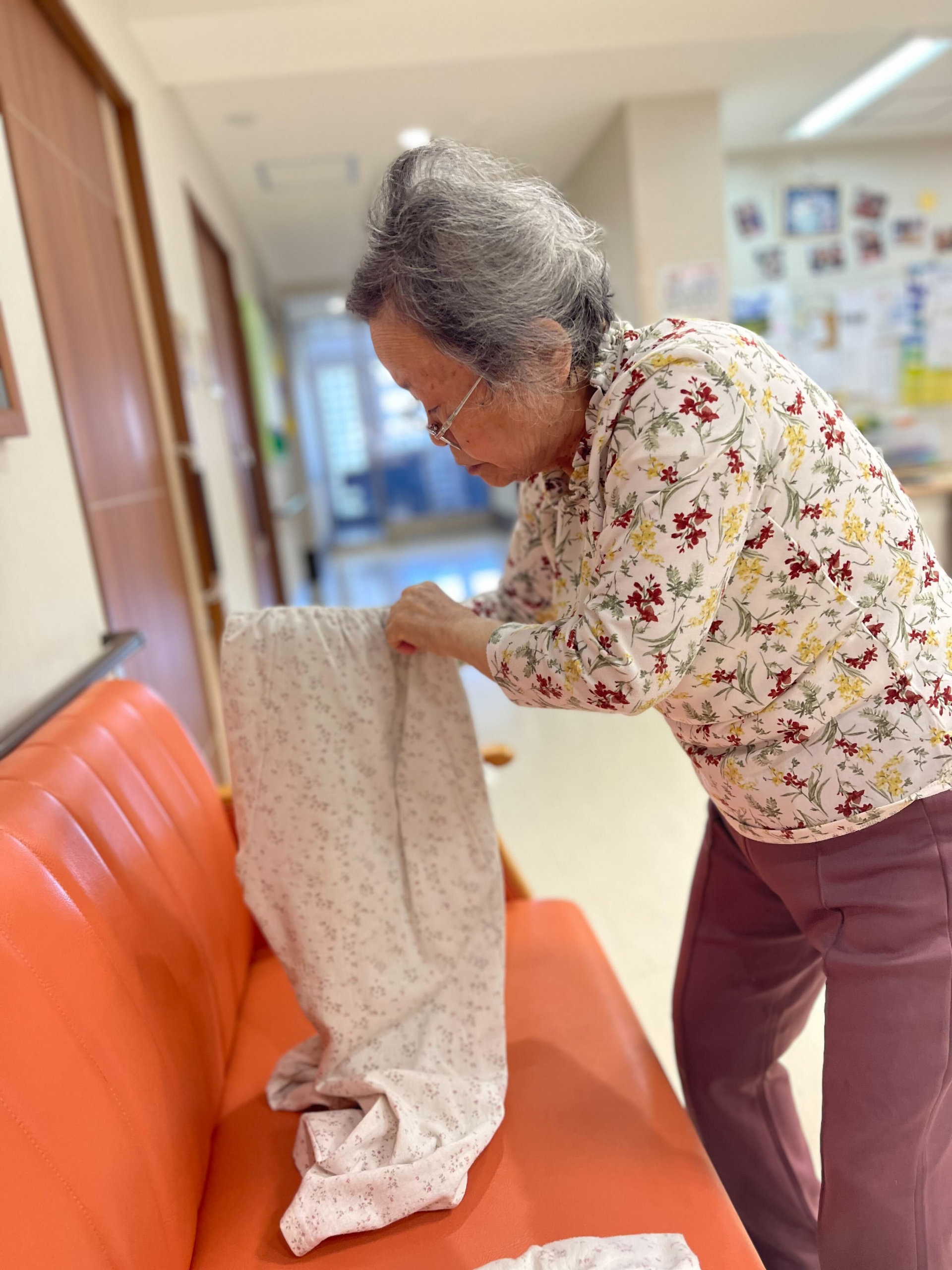 職員が洗濯物を取った時に「これ、乾いた?いいよ、畳むから」と仰ってくれた*様です。