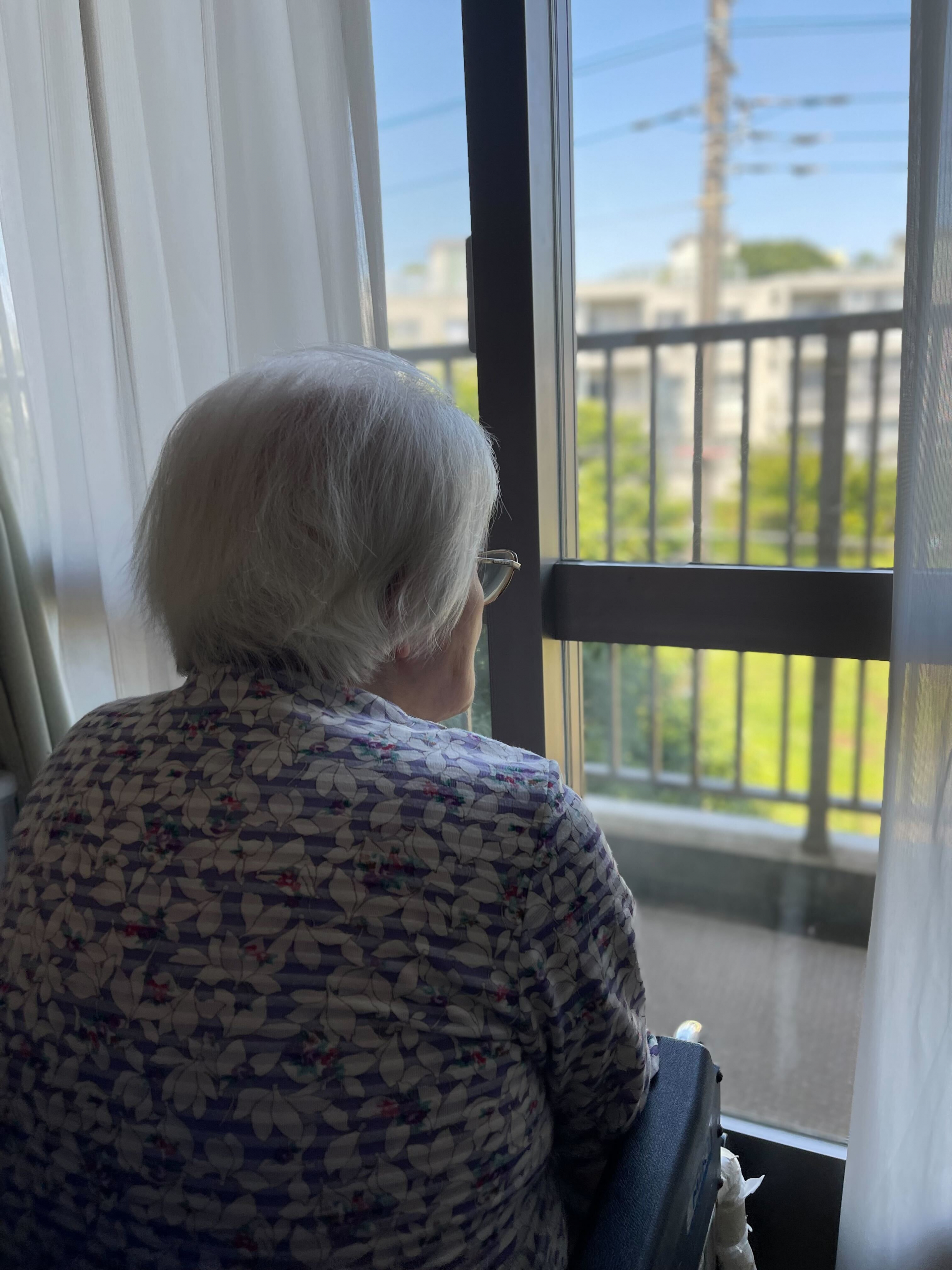 昼食後にお部屋で歯を磨いた*様です。歯を磨いたら、フロアに戻らない為、職員が部屋に確認すると窓から隣の公園に子供を遊ぶのが見ています。