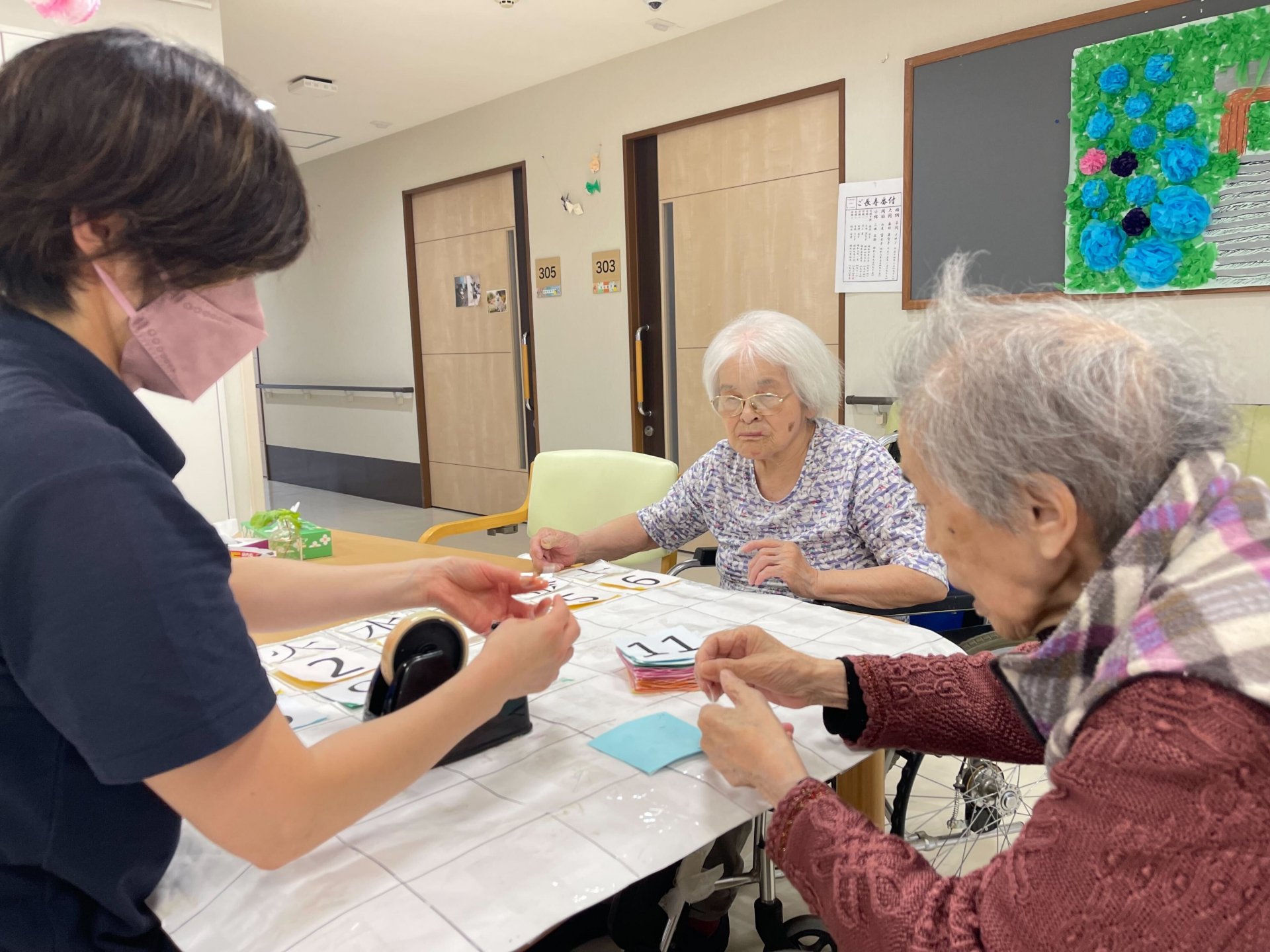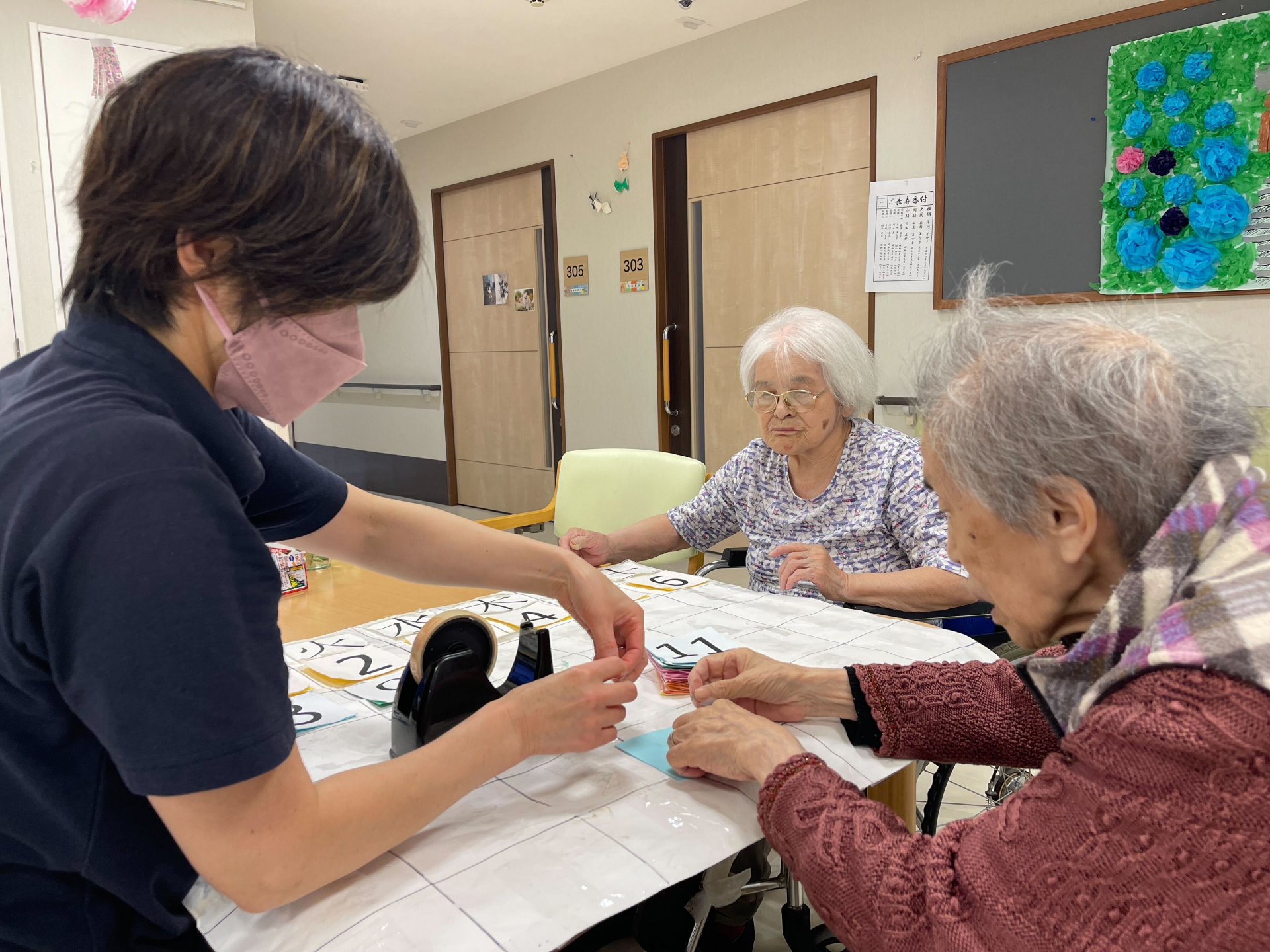 来月のカレンダーを変えないといけないので、おやつの前に皆で7月のカレンダーを取り組みました。
