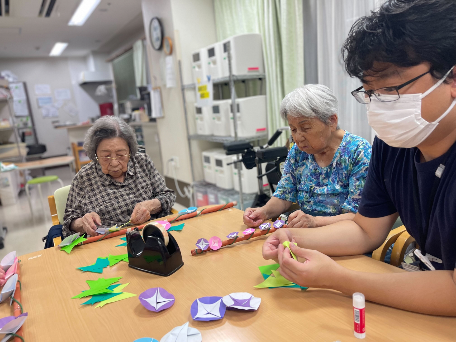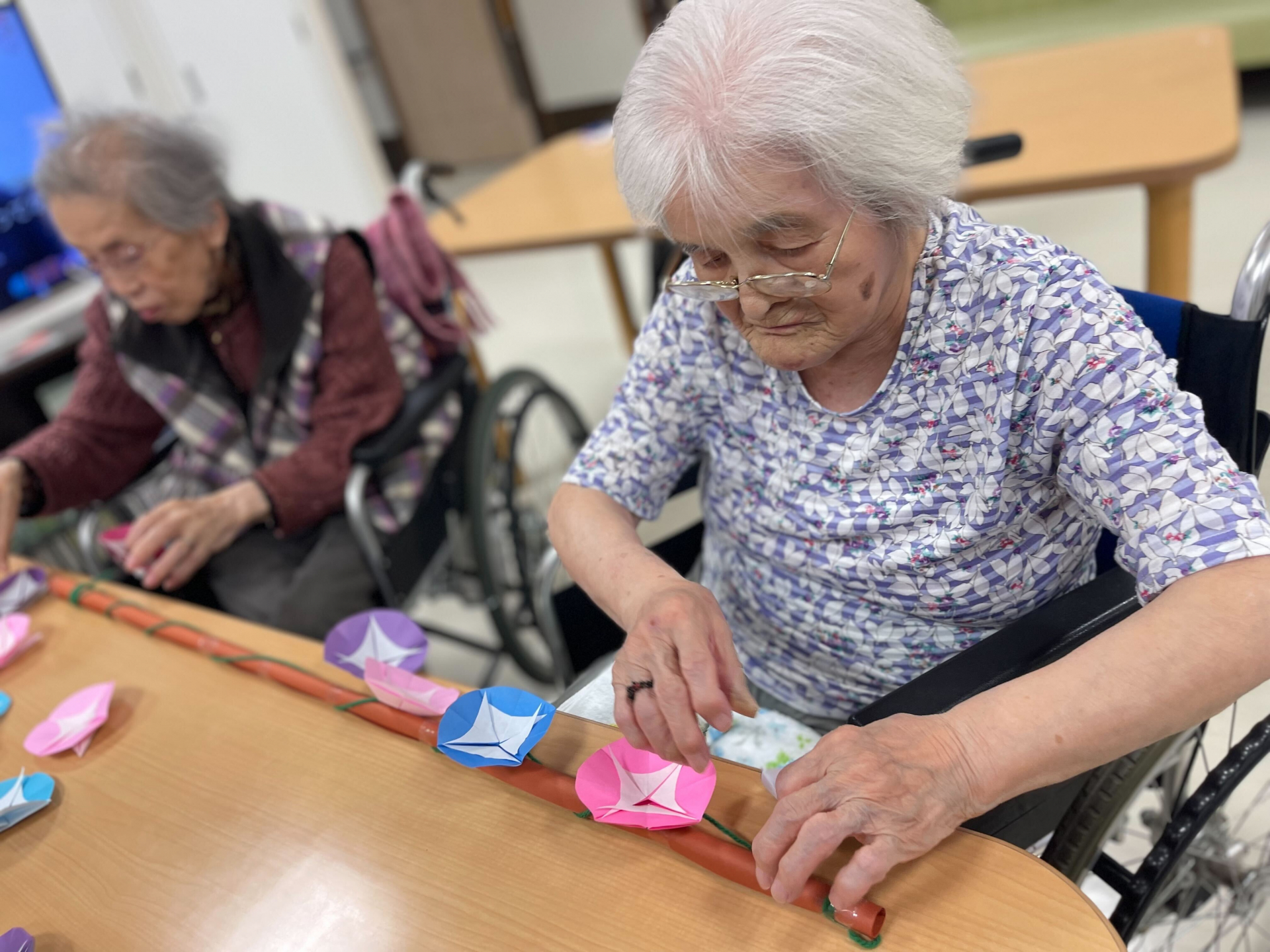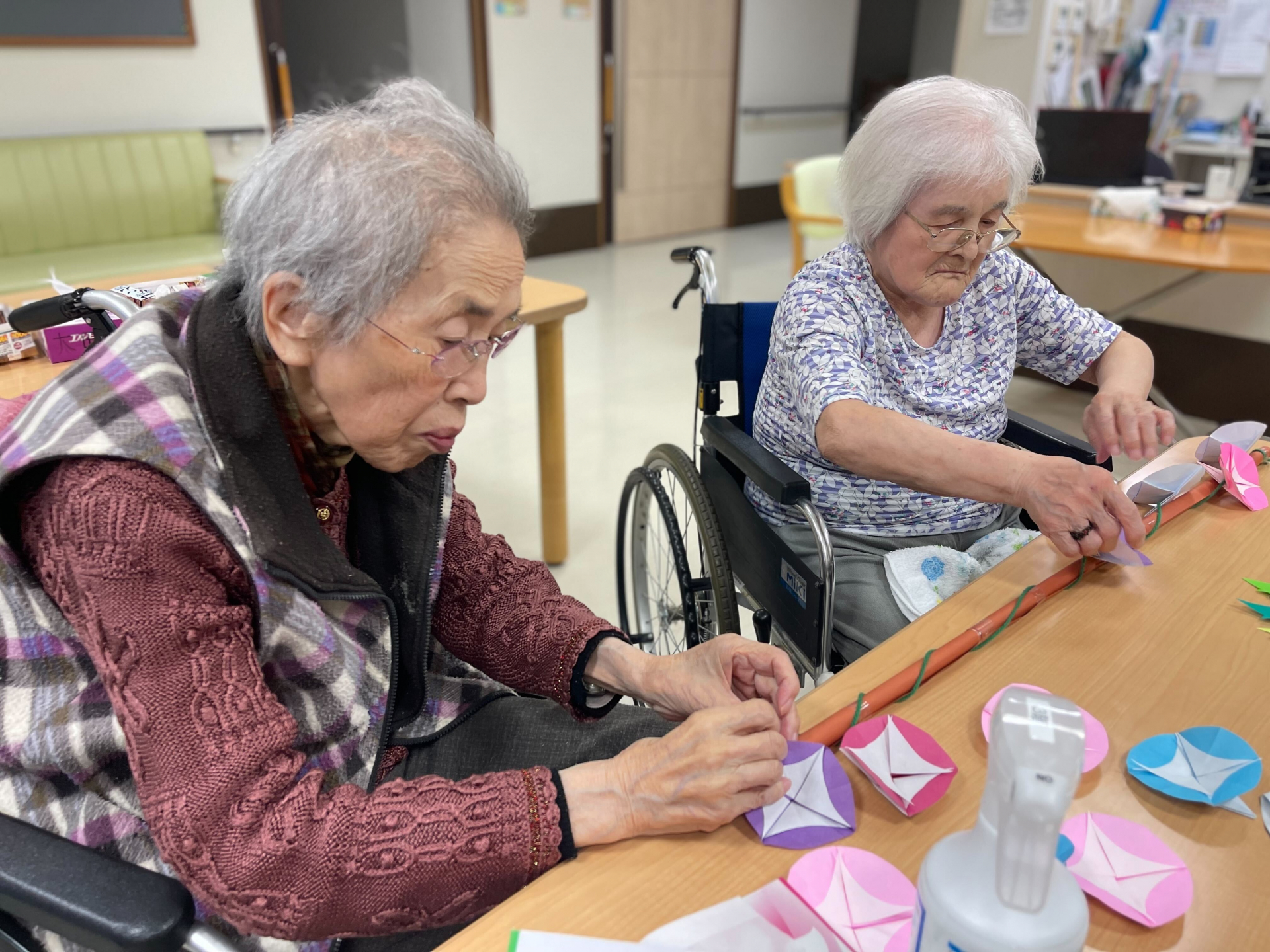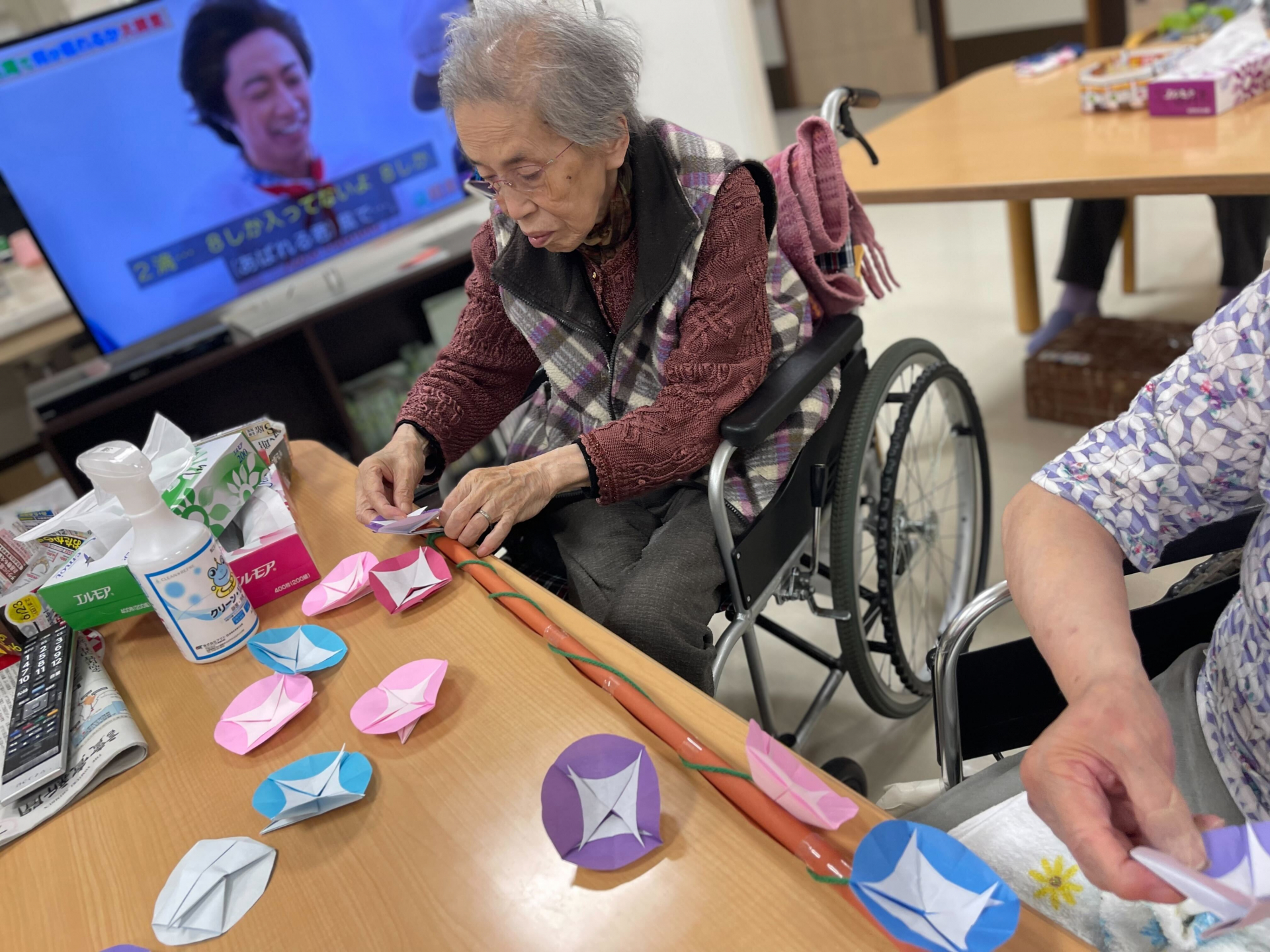 晩御飯の後に皆で折り紙からレクリエーションをやりました。