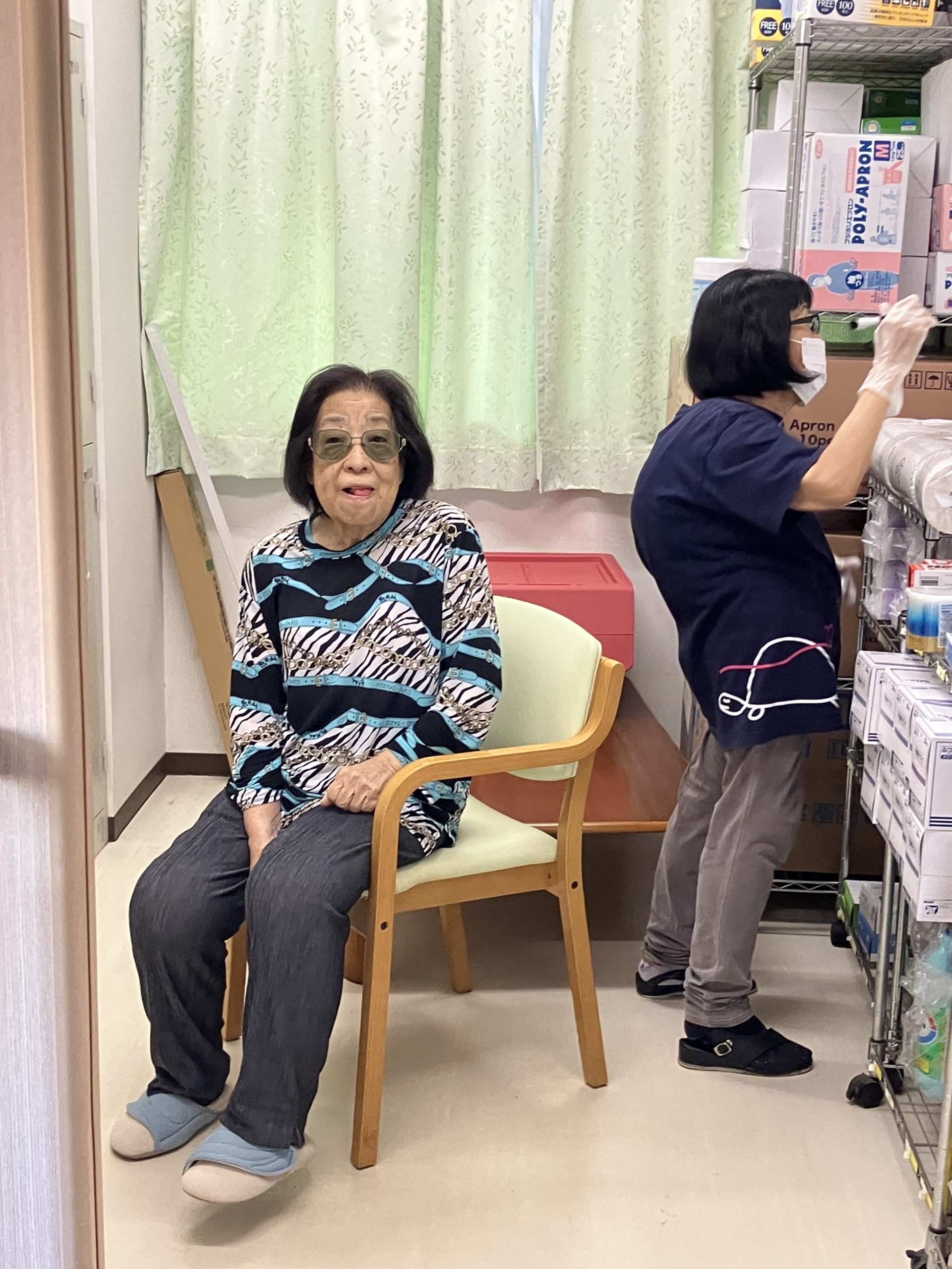 今日は2階の手袋が無くなりましたので、3階の在庫の所に職員と一緒に取りに行きました。
