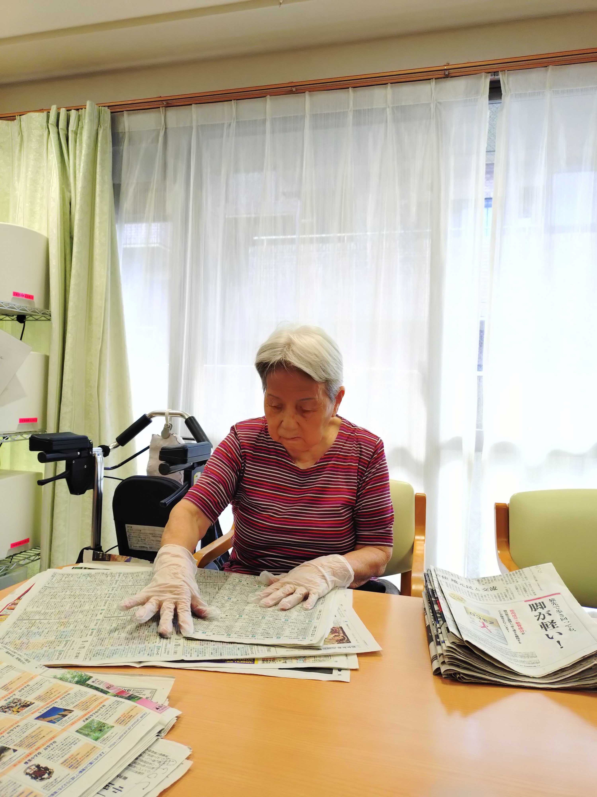 今日の午前中に3階入居者様と一緒に新聞を畳みました。