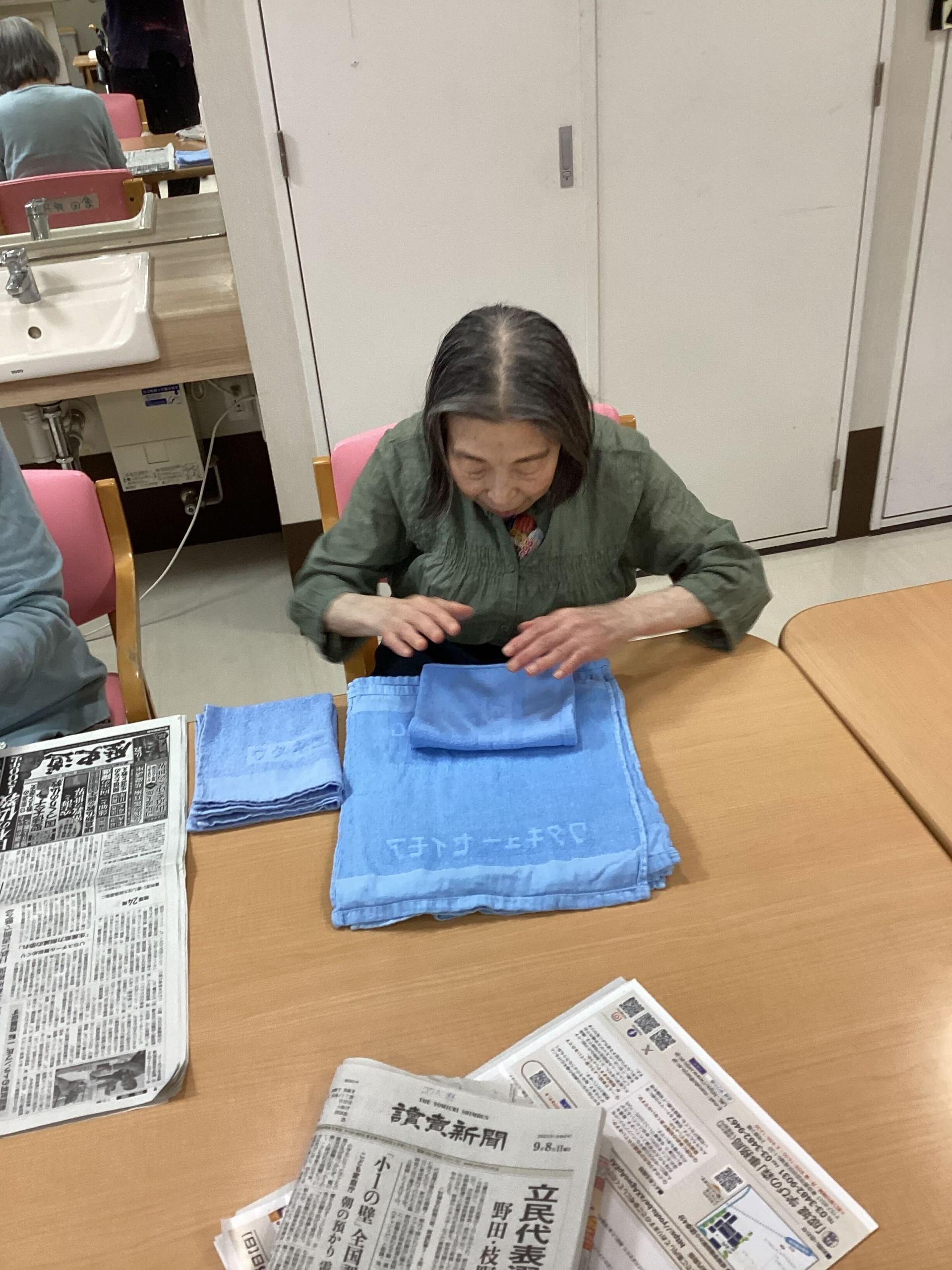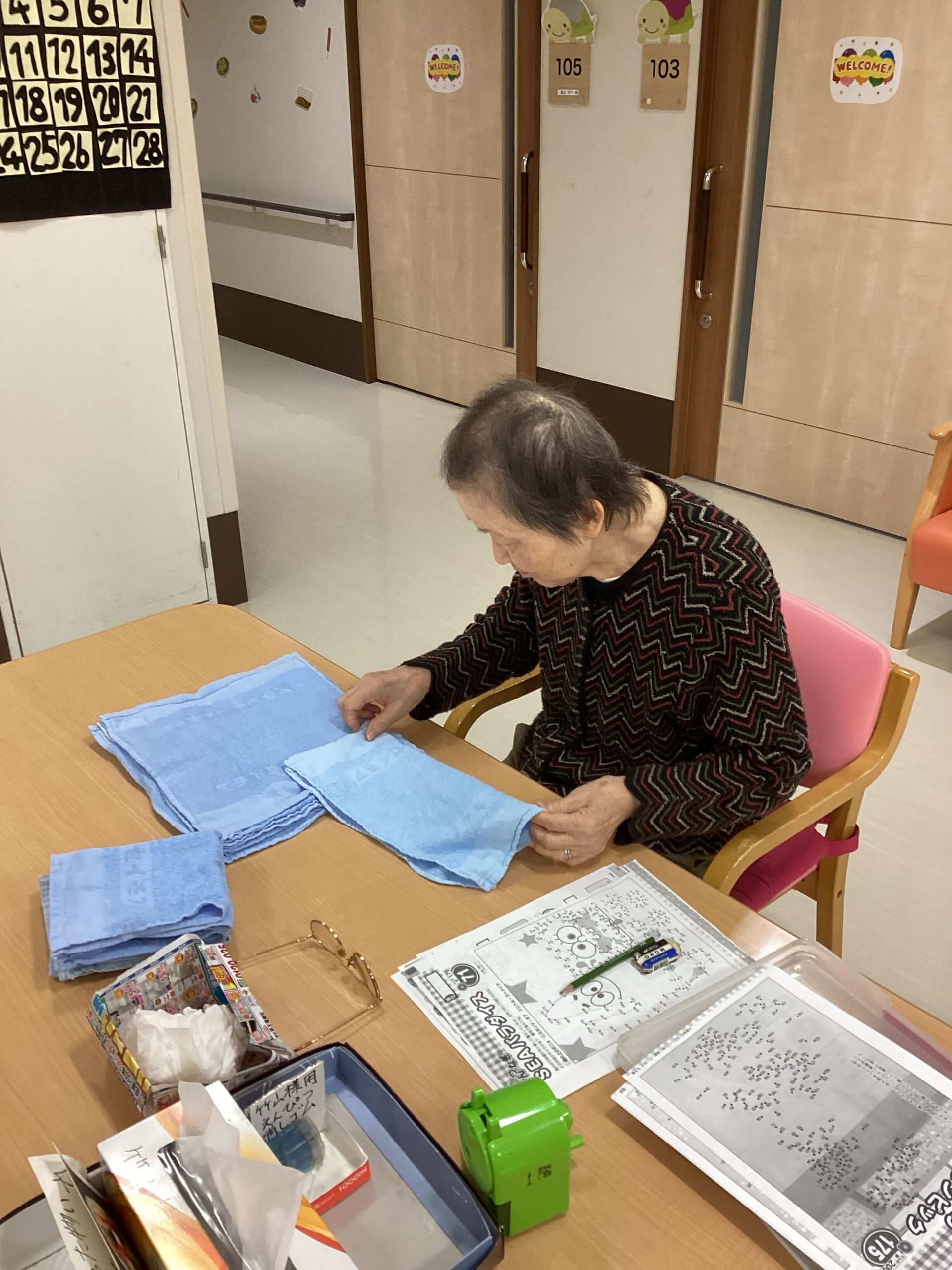2024.09.08 活動報告 【1F】清拭を畳む Tweet シェアする いつも清拭を畳んでくださってありがとうございます! またよろしくです! ゆっくりグループホーム鎌田 エヴァ 前の記事 2024.09.08 活動報告 【1F】洗い物を洗ってくださる 次の記事 2024.09.08 活動報告 【1F】お散歩 一覧へ戻る