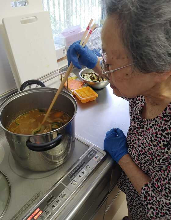 皆で茄子やズッキーニ、トマトなどを切り、煮込んで美味しいカレーを作ります!(^^)