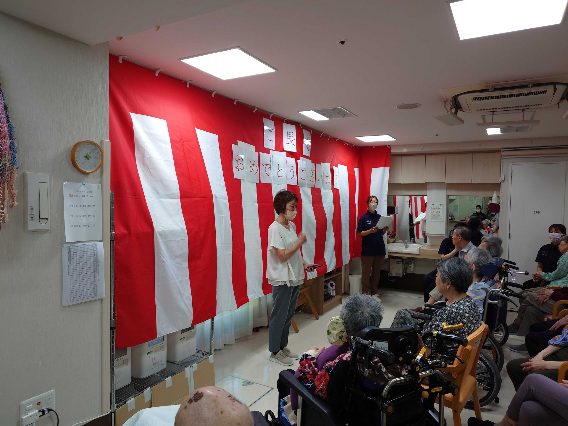 2024.09.14 活動報告 【1F】ご長寿祝賀会・表彰 Tweet シェアする ご長寿祝賀会で表彰されたF様です。 おめでとうございます! 皆様のご長寿をお祝いさせて頂き、私達も本当にうれしいです。^^ これからも、素敵に歳を重ねてください! 優っくりグループホーム鎌田 エヴァ 前の記事 2024.09.15 活動報告 【2F】タオル畳み 次の記事 2024.09.14 活動報告 【1F】ご長寿祝賀会のお食事 一覧へ戻る
